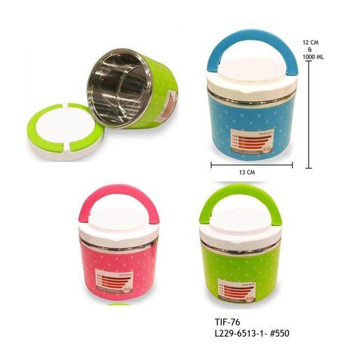 1 Layer Steel Food Insulated Lunch Box Container Tiffin- Multi-colours. 1 Layered Food Grade Stainless Steel Tiffin Box Or Lunch Box Made With Union Stainless Steel from inside And Outer Covering With Plastic. Take this Tiffin Box to the office, school, on the road, camping or hiking. This durable Tiffin Box is the perfect size to fit in your backpack or purse and is durable enough to keep up with your busy lifestyle. Insulation ensures that the food remains hot for up to 4-6 hours. Colour: Multicolor, Material: Stainless Steel, Package Contents: 1 Stainless Steel 1 Layer Lunch Box.