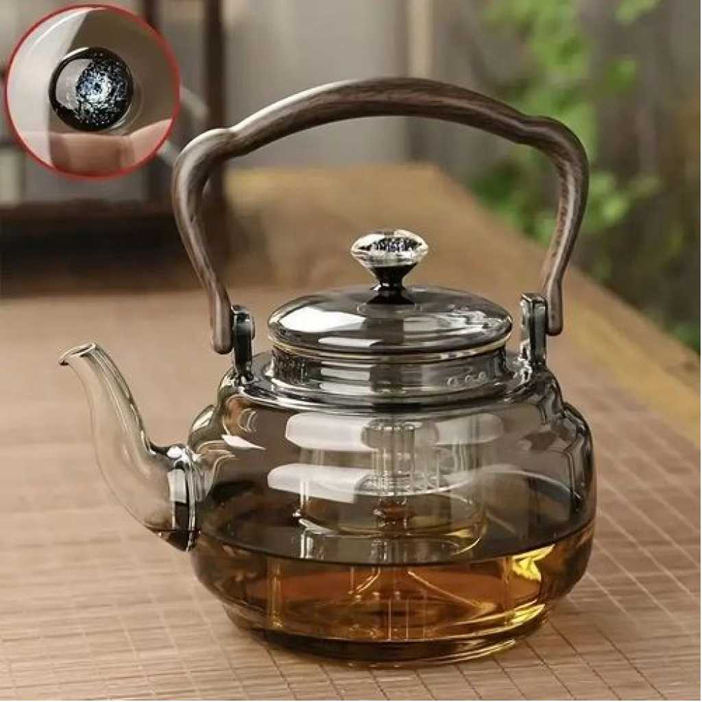1 Litre Pottery Kettle for Stove top Clear Kettle Decorate Gas Kettle High and Low Temperature Resistant Borosilicate Glass Beam Pot Office Teapot with Anti-Scald Handle Kitchen Supplies Tea Maker Hea
