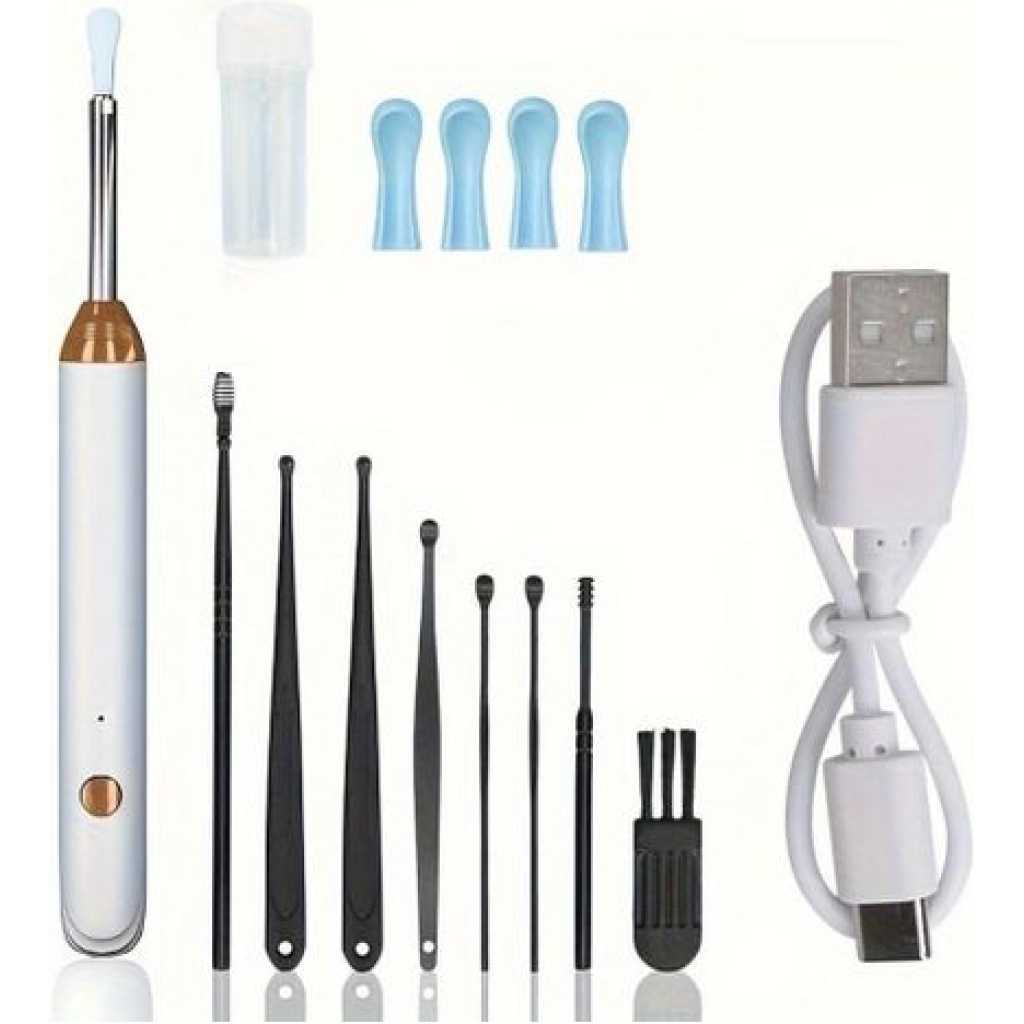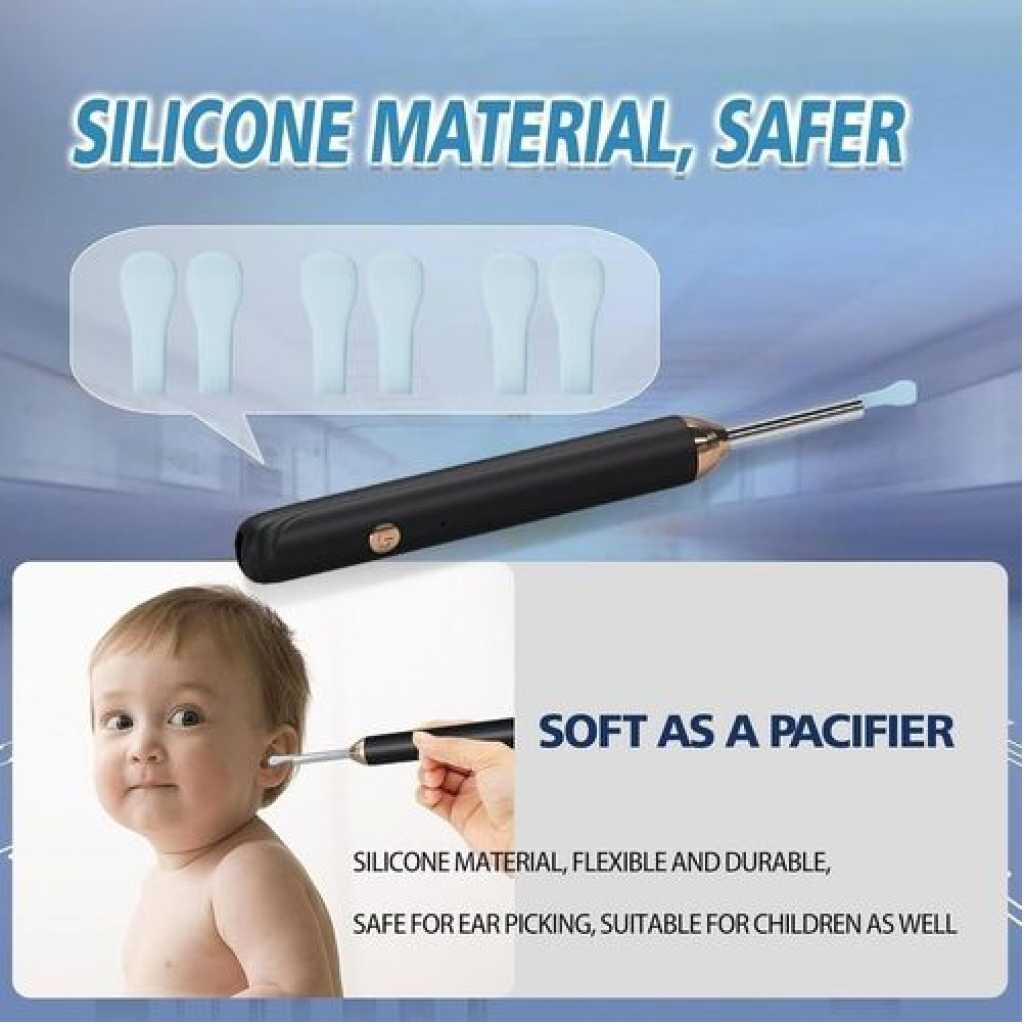 1 Piece Of Wireless Intelligent Visual Ear Wax Removal Cleaner Tool With HD Otoscope Camera Rechargeable Ear Spoon Endoscope Patch Smart Visual Otoscope Interface USB Type C Cleaning Earwax Removal To