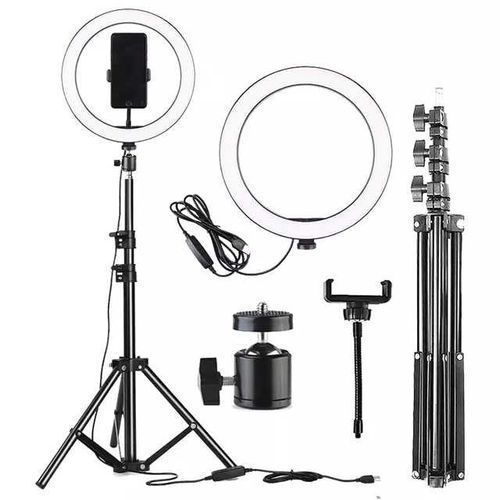 The brightness is adjustable. The ring light provides 3 color lighting modes and 10 brightness levels , including warm light, natural light and white light. You can literally find the mode and brightness to create a unique atmosphere to meet your various needs. For example, selfies, tiktok videos, makeup, live strea-ming, Instagram photos, YouTube videos, etc.Extensible and stable phone stand-light tripod made of high-quality aluminum to meet general photography needs. The best alternative to desk lamp, desk phone tripod or selfie stand tripod. The upgraded structural design ensures that you can stand more stably on the floor and hold a heavy phone with confidence.Durability and two adjustable knobs, you can adjust your phone horizontally or vertically or reach the desired ideal angle. Compatible with almost all smartphones, excellent selfie light ring (for iphone Android), the maximum width is 3.3 inches.Endless lighting angle-combined with a height-adjustable three-way pan head and a 360-degree rotatable phone holder, the halo light supports various azimuth movements without any restriction, panning, tilting, etc. You can set up to shoot at the desired angle to ensure that the light is aimed at the subject to improve the quality of the photo.Very easy to use , very affordable and yet of very good quality Dimmable LED ring light, dimming range from 1%-100%. Special LED design, light and portable. Constant current drive, low power consumption. No ultraviolet and infrared radiation, low heat, safe and environmentally friendly. Key Features: dimmable beauty face 3 colors long tripod stand