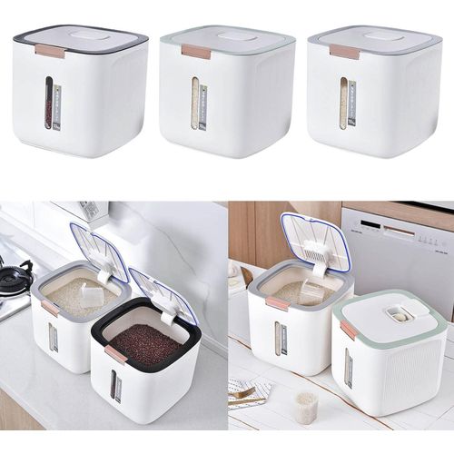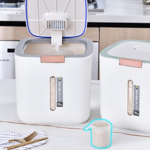 【BPA-FREE DOG STORAGE CONTAINER】 Dog containers is made of premium food-grade PP material, durable and safe to keep your food fresh. 【LARGE DOG FOOD STORAGE】 This containter has a 20 Lbs capacity of rice. Good for storing everything from rice, cereal, flour, oatmeal, snacks, pasta, beans, sugar, pet food and more. Also great for pet food; easy to clean and scoop food from, and tight lids keep out moisture and humidity. 【SUPER EASY TO USE】 Our food storage container easily open the cereal container by simply pushing button on the lid. you can easily keep it closed. It also comes with a measuring cylinder, making it super easy to use. 【SUPERB SEALING】 Double silicone seal & double silicone sealing ring to achieve effective triple sealing, waterproof and moisture-proof. Putting it in a dry place can extend the life of the rice bucket. There is also a desiccant slot on the inside of the lid, which keeps out moisture and all bugs. High quality material, durable, easy to clean, and environmentally friendly. Visual design, real-time observation of rice storage and timely replenishment, easy to move. Multi-purpose: store rice, flour, beans, dried fruits, candy, cereals and other sundries. Color of and elegant, simple and beautiful, different decorative styles are a beautiful landscape. Food storage containers are sealed. The container is a closed environment to ensure that the food is dry. Convenient storage and space saving.