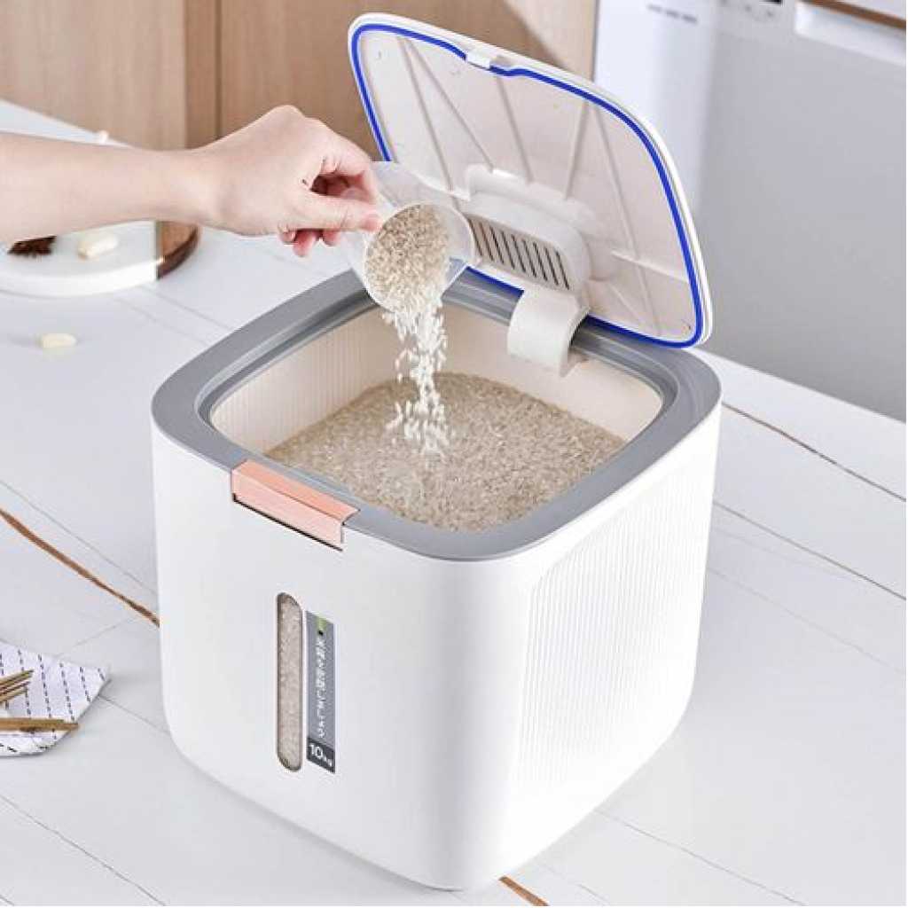 Key Features: 【BPA-FREE DOG STORAGE CONTAINER】 Dog containers is made of premium food-grade PP material, durable and safe to keep your food fresh. 【LARGE DOG FOOD STORAGE】 This containter has a 20 Lbs capacity of rice. Good for storing everything from rice, cereal, flour, oatmeal, snacks, pasta, beans, sugar, pet food and more. Also great for pet food; easy to clean and scoop food from, and tight lids keep out moisture and humidity. 【SUPER EASY TO USE】 Our food storage container easily open the cereal container by simply pushing button on the lid. you can easily keep it closed. It also comes with a measuring cylinder, making it super easy to use. 【SUPERB SEALING】 Double silicone seal & double silicone sealing ring to achieve effective triple sealing, waterproof and moisture-proof. Putting it in a dry place can extend the life of the rice bucket. There is also a desiccant slot on the inside of the lid, which keeps out moisture and all bugs. High quality material, durable, easy to clean, and environmentally friendly. Visual design, real-time observation of rice storage and timely replenishment, easy to move. Multi-purpose: store rice, flour, beans, dried fruits, candy, cereals and other sundries. Color of and elegant, simple and beautiful, different decorative styles are a beautiful landscape. Food storage containers are sealed. The container is a closed environment to ensure that the food is dry. Convenient storage and space saving.