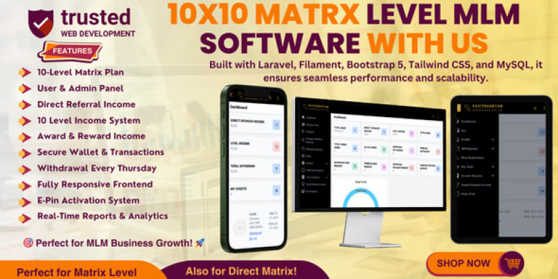 10 Matrix MLM Level Plan – Laravel Script. The 10Matrix MLM Level Plan is a powerful multi-level marketing (MLM) software that enables businesses to manage their MLM