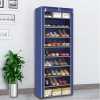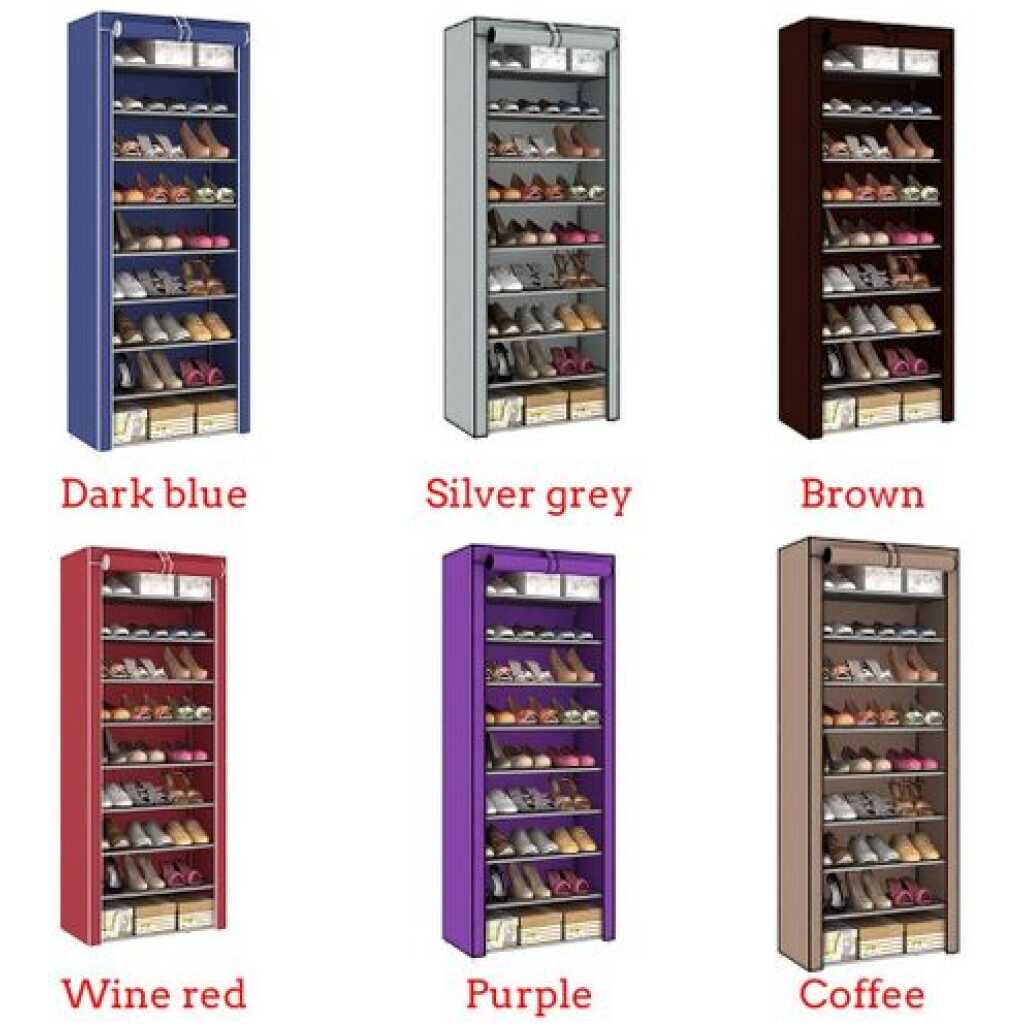10 Tier 9 Grid Shoe Rack Detachable Dustproof Non-Woven Standing Shoes Storage Organizer – Multi-colour This 9-tier Dustproof Shoe Rack is designed to provide a great storage solution for your collection of favorite footwear. It is constructed out of metal pipes non-woven fabrics and plastic connectors so it can hold numerous pairs of shoes. This innovative lightweight space saving shoe rack can be placed in a cubby closet mudroom or busy entryway to keep shoes or accessories accessible. Each shelf holds up to 3 or 4 pairs of full-size shoes Side pockets for shoe brushes keys toys or other sundries. With zippered cover this elegant shoe cabinet will keep the dust away and when gusts coming you can just zip down the cover to keep your shoes unviewable. Package Included: 1 x Shoe Rack (Only Rack. Other things shown in the picture are not included.) Specifications: Color: Wine red, Coffee, Silver grey, Purple, Dark blue, Brown Material: Steel pipe+Non woven Pipe diameter: 9.8MM Size: 56*28*155cm/22.05″x11.02″x61.02″ [Conversion: 1cm=0.3937 inch, 1inch=2.54 cm] Features: Strong Material Constructed from selected non woven breathable fabric, high quality steel tube and PP plastic connectors, sturdy and stable for long term use. Abundant Storage Space Durable 9 tiers Shoe Rack can Store up to 27 pairs of shoes to keep your bedroom, hallway or mudroom well organized. Dustproof Zipper doors can protect shoes from dust, dirt, water, damp, and it can be rolled up easily, convenient to take shoes in or out. Easy assemble You can remove a layer to fit not only boots, high heels, but also fit purses or other larger accessories, disassemble it and assemble it as your need. Suit for your entryway, closet or mudroom living room, bedroom, or kitchen away from mess, ideal home office organization rack. Note: Due to different producing batches, product details might be a little different. If you mind the difference, please buy it carefully. Please allow 1 3CM differs due to manual measurement. Due to the different display and different light, the picture may not reflect the actual color of the item. Thanks for your understanding.