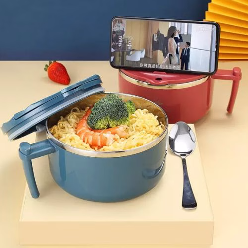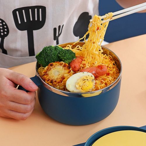 Key Features: Leak and Spill Proof: Attached with a silicone seal ring on each stackable inner lid to lock in freshness and prevent food from leaks, spills and odors. Make noodles more convenient 15cm bowl mouth, instant noodles can be put in completely without crushing Besides noodles, you can also use Bring rice and beat rice Fresh Fruit Salad Store dry goods Suitable for daily use and travelling, offices, camping, picnics, vacations, work lunch, school lunch, student dormitory, etc. instant noodle bowl Lightweight and portable, more conveneint to carry and use. soup handle container The ergonomic handle allows you to have a comfortable grip and easy to carry. minutes noodles holder bowl The lid design, suitable for covering when you cook instant noodles, and it also protects against dust and dirt. leakproof food bowl Made of high- quality PP and stainless steel material, safe and durable for long lasting use. metal porridge bowl