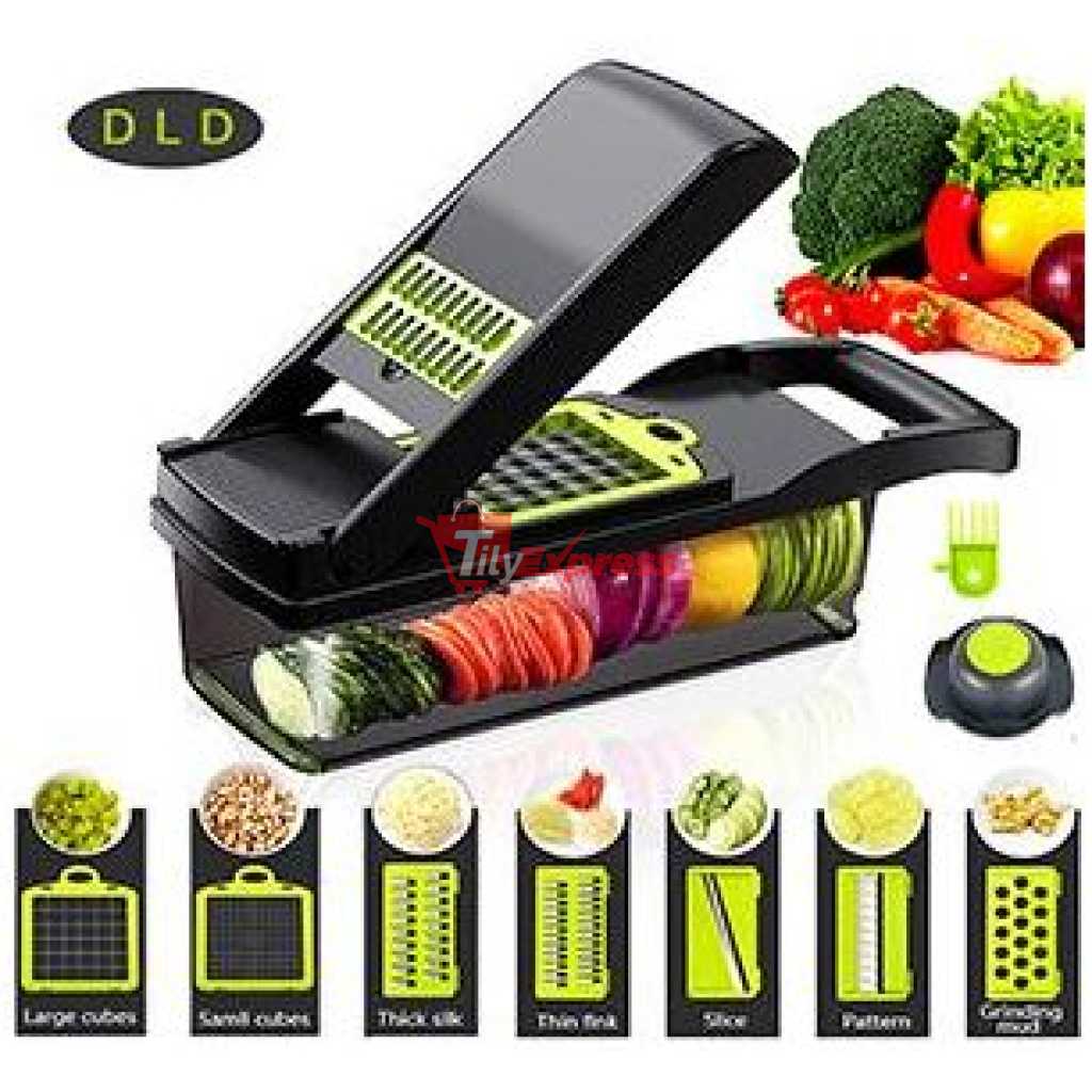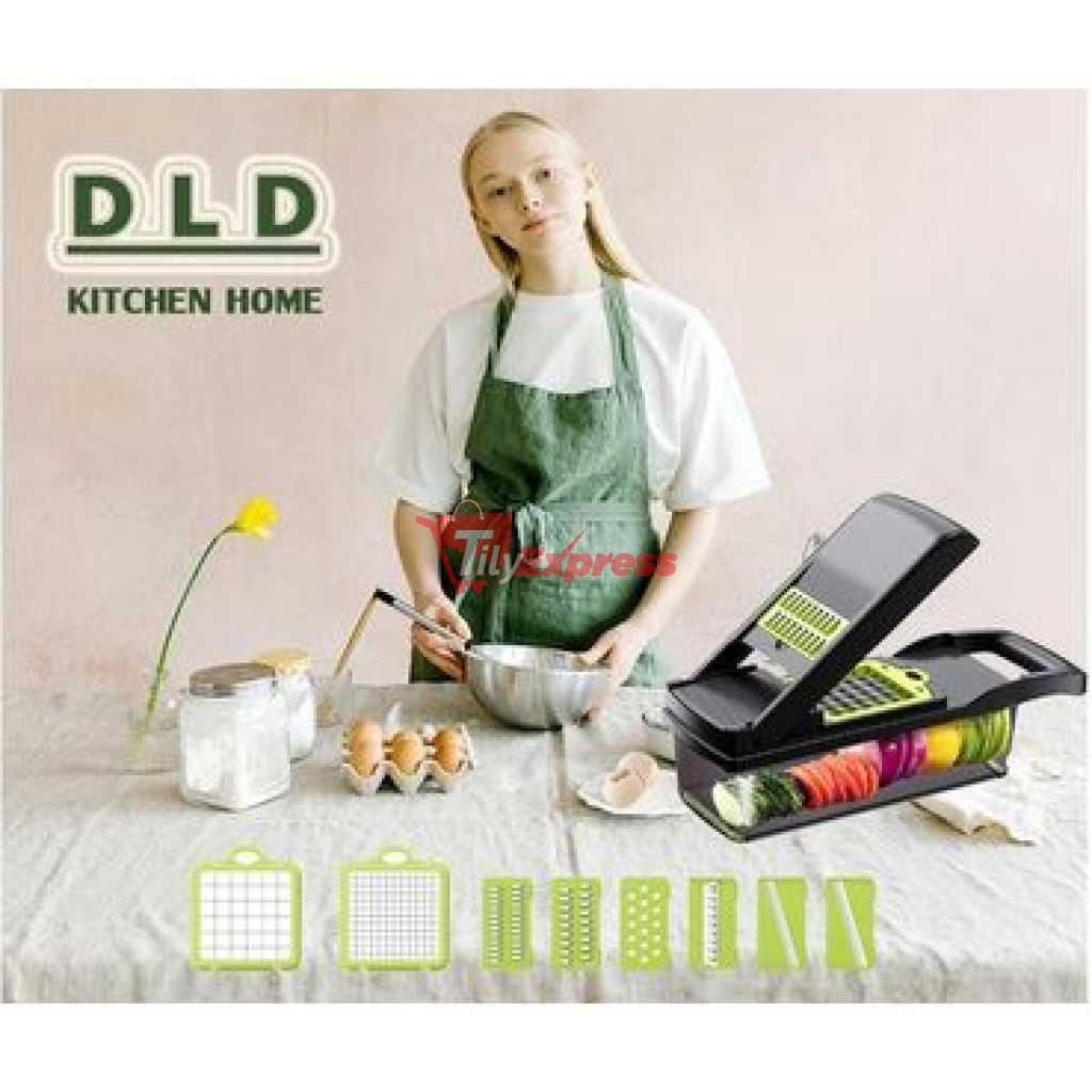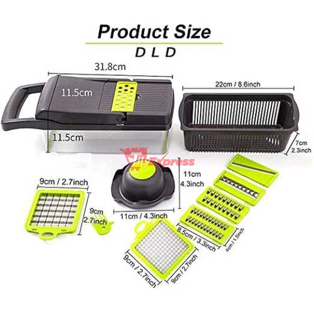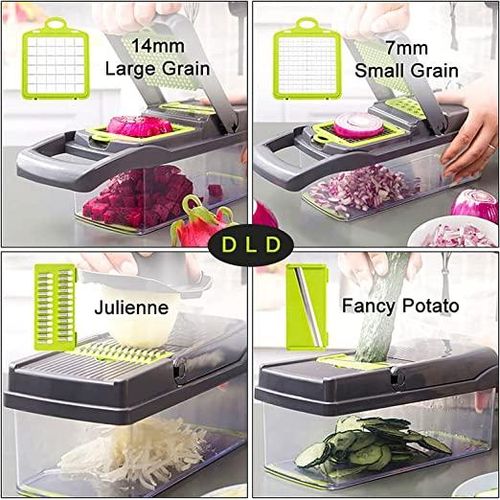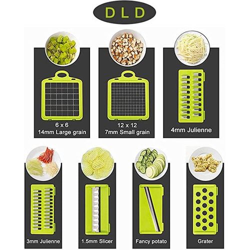 11 in 1 Multi-function Vegetable and Fruit Chopper Kitchen Diced Artifact Potato Shredded grater household potato chip sliced grater -Grey Save time and effort Compared with traditional blade chopping/cutting/slicing, the super sharp shredder can help you shorten the preparation time. The hardened stainless steel vegetable chopper is easy to slice vegetables or fruits into thin slices, and only needs to be moved once each time. Ergonomic food mincer The soft grip enhances the leverage, and the non-slip rubber strips ensure stability during use. Safely and easily slice fruits, vegetables, diced, diced, and diced Precautions Please wear safety guards when cutting vegetables to prevent injuries. Do not touch the blade with bare hands. Stainless steel blade Our onion chopper vegetable chopper adopts anti-rust and durable 420 stainless steel, which keeps the sharpness of the razor, makes cutting and grinding clear and smooth, and will not rust over time. When replacing other blades, the blade can be easily inserted and pulled out. Even hard potatoes and sweet potatoes are easy to cut. 14x14mm & 7x7mm Dicer Blade · Ginger Grater Blade · 4mm & 3mm Shred Blade · 2mm Slicer Blade · Waffle Blade · Egg Separator · Drain Basket · Hand Guard Cleaning brush