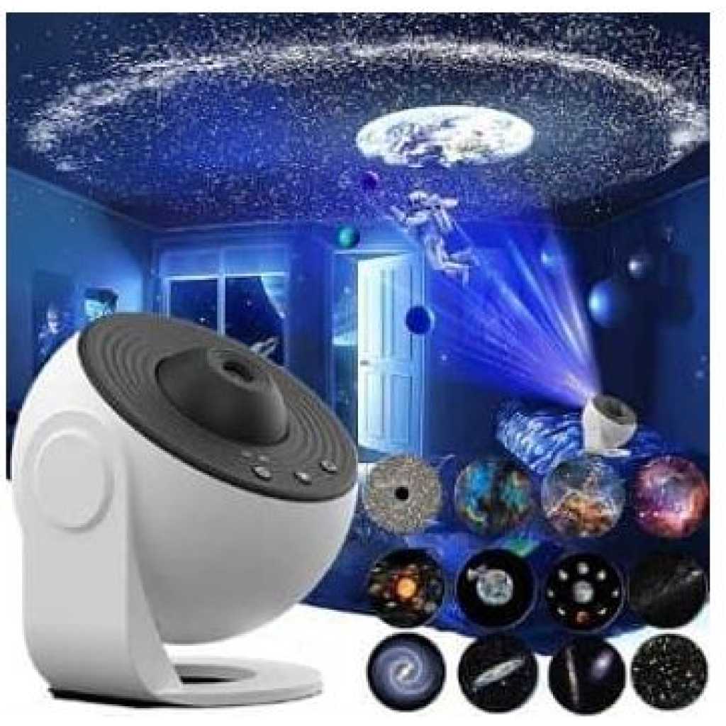 Specification Product name: Milky Way starry night light projector Color: white Light source power: 10W Product size: 108 * 109 * 112mm / 4.25 * 4.29 * 4.41 inches Material: ABS+PC Voltage: ≤36V(V) Description Built-in 12 4K images: free to choose projection according to preference, using ultrasonic integrated design process, waterproof, so that is more durable. Timer off: you can set star projector to turn off after 1 or 2 hours without worry. Turn on when you want to go to sleep. If you forget to set timer, will turn off after four hours, but you can turn back on if you want to continue using material: planetarium projector is made ABS material that will not cause any harm to surrounding environment. light emitted is also extremely soft and will not cause harm to humans. Wide range applications: Perfect for decorating your bedroom, game room, bathroom, theater, ceiling, walls, Christmas decorations, party decorations, weddings, birthdays and anniversaries. GREAT GIFT FOR EVERYONE: globe Galaxy projection light can be used for any space aesthetic decoration. s more than just a gift. Galaxy Projector can create a romantic atmosphere and help us discover a better life. Product List: 1*Globe projection lamp 1*Instructions for use 1*USB charging cable 12*Galaxy Series Movie
