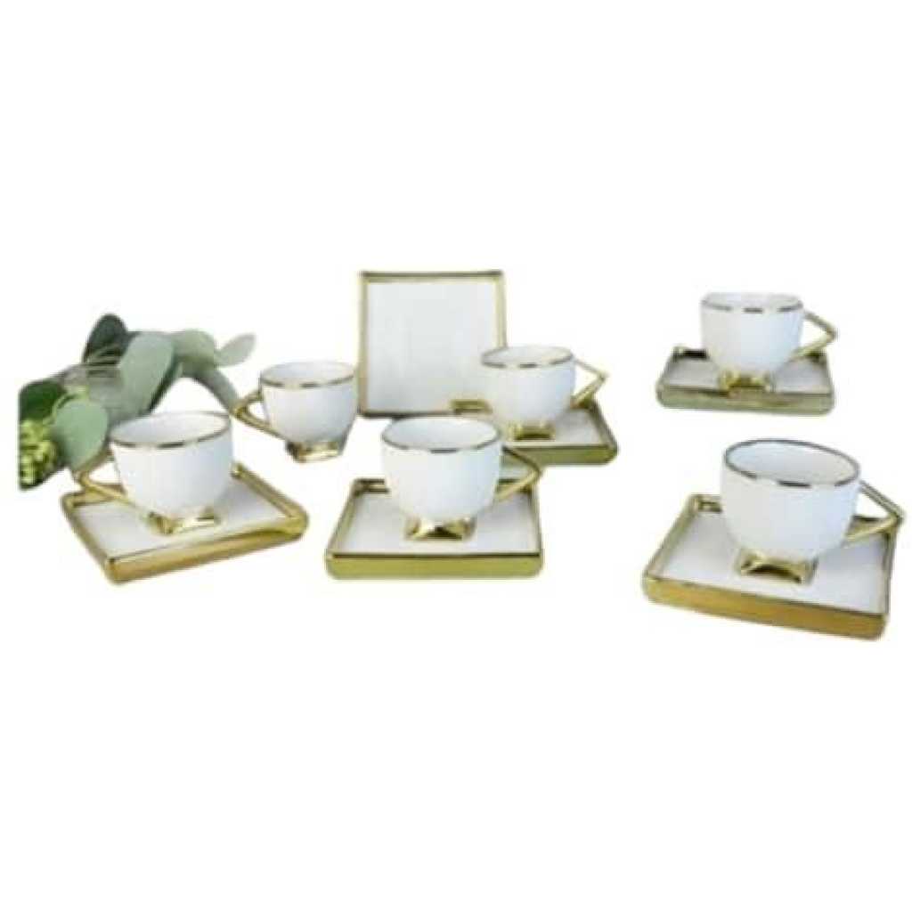 Set contents: 6 coffee cups, 90 ml, 6 saucers, material: porcelain A unique aesthetic is created when aerodynamic shapes with geometric shapes meet bright colours and glitter… The Art Deco coffee cup set adds unforgettable elegance to your coffee drinks with this unique aesthetic and offers a long service life with its smooth structure and durability made of porcelain. It is recommended to wash this product by hand Enjoy the pleasure of drinking Turkish coffee with every sip from the KARACA coffee cup! Choose the right size of the mug you are looking for: 75-90ml classic Turkish coffee, 90-120ml filter coffee, 140-160ml is perfect for your Turkish coffee enjoyment. EXCELLENT GIFT: With its unparalleled beauty and aesthetic that will last for years, it makes a great gift for new homes and families as the simple yet elegant design allows for versatile use and will suit every taste.