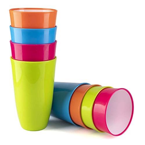 Key Features: 12 PLASTIC TUMBLERS: Included in this set is 12 strong plastic tumblers. There are 4 colours in each set. These colours are lime green, sky blue, lavender purple and salmon pink. The cups can hold 600ml/20 fl oz of liquid and measure 15.5cm (6.10 inches) in height. Each cup has a filling diameter of 9cm (3.54 inches). Please wash before first use. REUSABLE CUPS: These lightweight cups are different to traditional plastic cups as they can be used over and over. After each use you can simply hand wash the cups in hot soapy water or put them in the dishwasher. These cups are scratch resistant and stack inside each other to free up storage space when not in use. FOODSAFE PLASTIC: This set has been tested and is made from food safe plastic. As well as this the cups are BPA free. Since these cups are made of plastic and not glass it makes them safe for children, adults as well as the elderly to use. They will not break or shatter and are also light enough to float on an inflatable drink holder in the pool or hot tub. MULTIPLE USES: These cups are suitable for indoor and outdoor use. Made from sturdy plastic they can stand up to the elements. These cups are great for camping, BBQs, hiking, outdoor parties, boat trips and picnics. Great have on the patio in the garden on a sunny day and fill with water, juice, milk, beer, wine, champagne, spirits or anything really. Be the host with the most. Eco-friendly