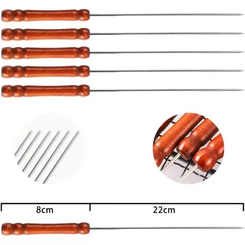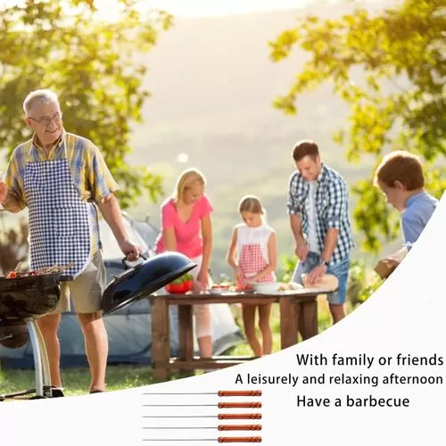 Key Features: Safe Materials These kebabs are made of high quality wood and food grade metal materials, which are rust resistant, heat resistant, sturdy and reusable. WOODEN HANDLE Provides a comfortable, long-lasting grip, prevents finger burns and can be easily set up, rotated and removed from the grill. Pointed Round Shield The tortoise head has a 15° sharp angle that will not hurt hands. It is convenient and quick to carry meat and vegetables. Enjoy it with ease. Easy to Clean After each use, you can put it in the dishwasher or hand wash and wipe it with a towel. No residual smell, can be reused for a long time. Wide Range of Applications Our barbecue skewers are suitable for BBQs, cocktail parties, birthday parties, fruit grills, parties, outdoor play, weddings and other occasions.