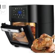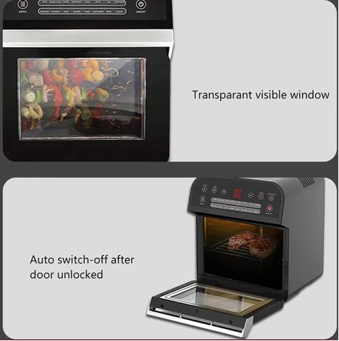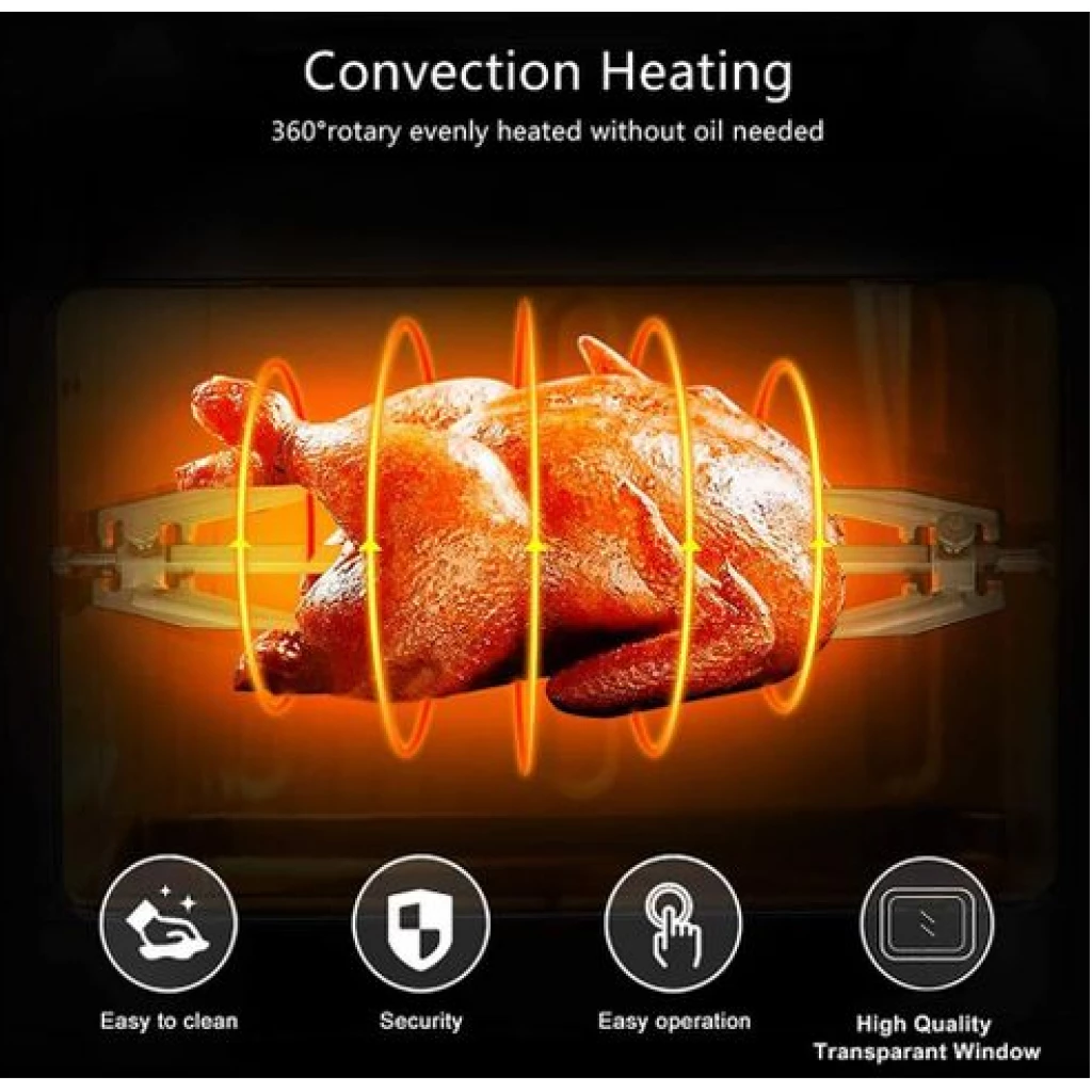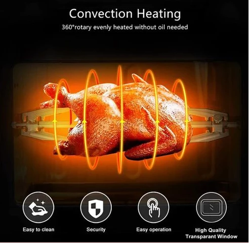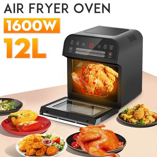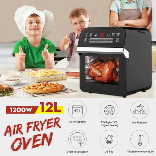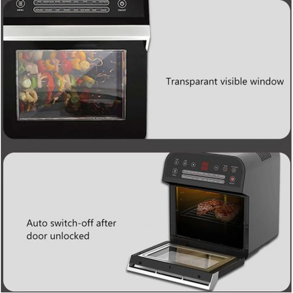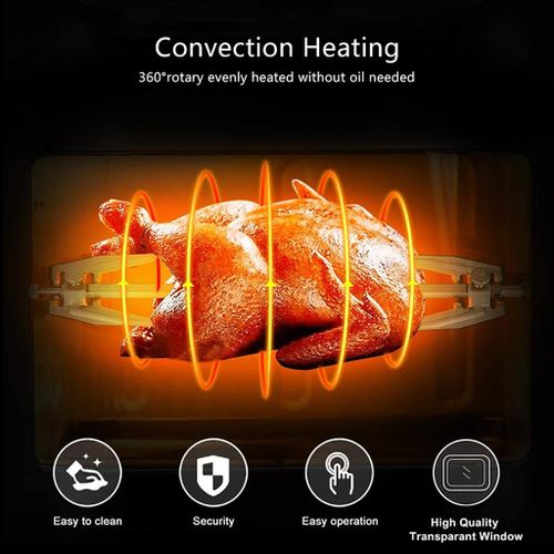 12L electric oven Airfryer grill 16 in 1 Machine: The powerful meal making machine is not only an air fryer, but also a rotisserie, dehydrator, pizza grill and oven toaster, it can complete various delicious food, such as roasted chicken wings, chips, pizza, steak and so on%3B A necessary tool in the kitchen, which can almost meet all requirements for people Family sized %26 Space Saver: 12L of cooking space makes this air fryer one of the largest on the market, while still being compact enough to fit easily on your countertop. 3 rack levels allow you to prepare family sized quantities, or control how fast and how crispy your food cooks Built in Rotisserie: prepare whole roasts, tendrloins, racks of Kababs, and even a whole chicken! Get crispy, tener meats, perfectly fish, and expertly roasted vegetables with the BioloMix air fryer oven’s built in rotisserie it’s fast, easy, and you’ll love it Includes Multiple Accessories: Comes with standard 5 accessories, everything you’ll need to make a homemade meal with ease Easy to use: Easy to read, simple to use control display with 16 presets takes the guesswork out of cooking times and temperatures. Cook for convenience or to impress without ever having to turn on the range. And when you’re done, The stainless steel interior and remove able, non stick drip pan makes for easy clean up Key Features: Digital Thermostat Temp. Setting 80℃-200℃ With 30 Mins Timer Auto Shut Off For Precise Cooking Rapid Air Circulation System Fry Food Faster And Save Energy 6 Cooking Presets Non-stick Coating Food Basket With LFGB With Over Heating Protection Function Cool-touch Housing And Handle Color: Black Dimension: 31.5×33.4x37cm / 12.4×13.1×14.6″ Power: 1600W Voltage: 220 240V Frequency: 50/60Hz Capacity: 12L