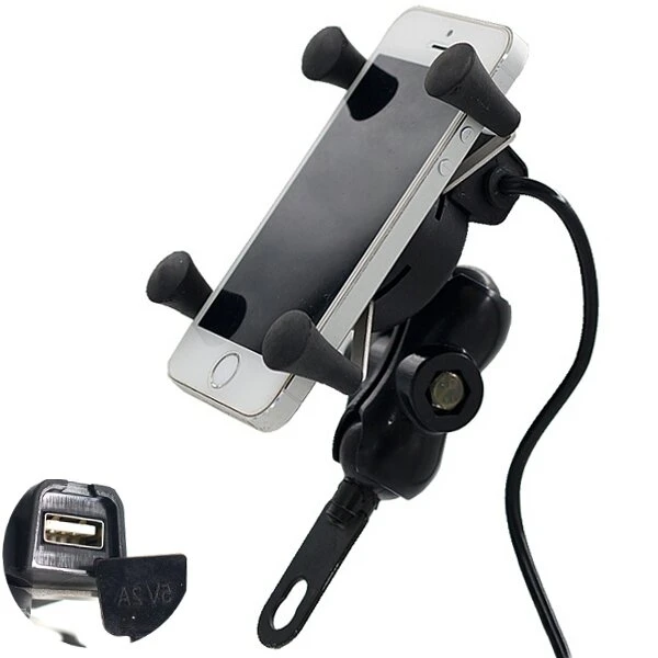 12V-30V 3.5-6 tommer Motorcykel Telefon GPS Holder X-Style USB Oplader Strømudtag