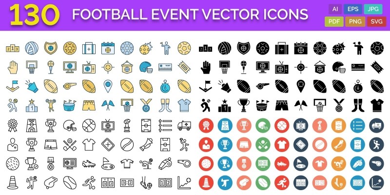 130 Football Event Vector Icons. 130 Football Event Vector Icons