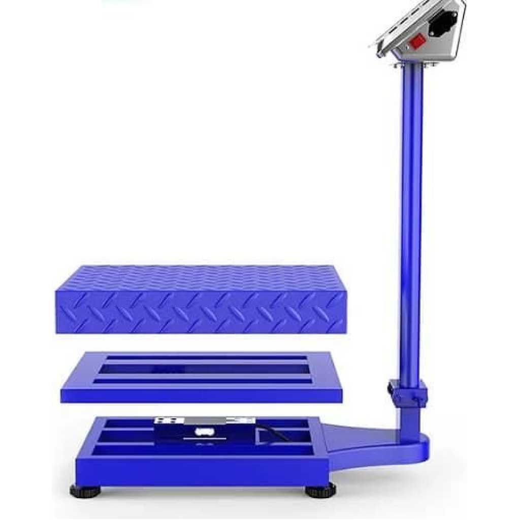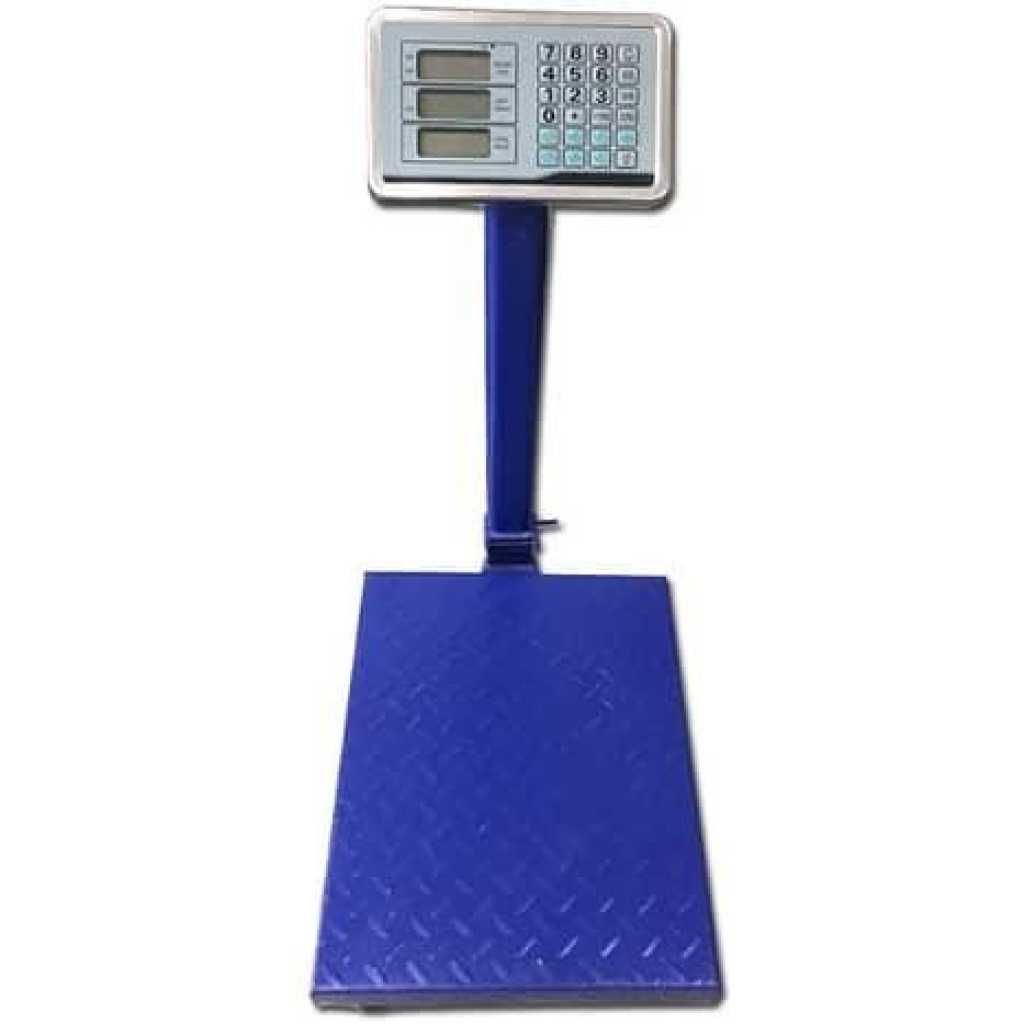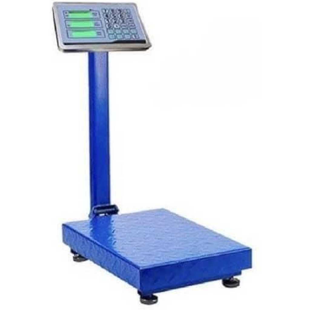 Digital Platform Weighing Scale 150kg- Multi-colours. The industrial bench scale is designed to meet the requirements of manufacturing, agricultural and general weighing applications. Combining fast weighing response time with accurate measurement to suit any weighing application. Ideal as a Factory Scale and Warehouse Scales. Operated by AC power or built-in rechargeable battery. It is ideal for use in environments where power may not be available. Calibration and basic set-up are completed in the factory, so the scale is ready to use right out of the box. Internal battery lasting at least 15 days (depending on usage lasts longer than 30 days) Specifications: – Voltage: 220V – Rating Power: 10VA – Max Weight: 100kg – Min Weight: 2kg What’s in the box 1 xDIGITAL PLATFORM SCALE 150kg