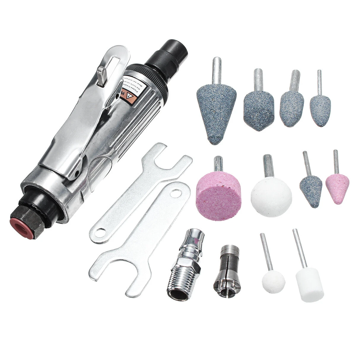16개 1/4인치 자동차 공기 압축기 90psi 그라인더 회전식 공구 세트 돌과 케이스 포함