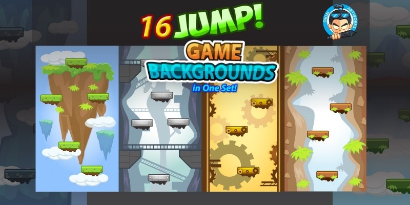 16 Jump Vertical Game Backgrounds Pack. Jump Game Backgrounds in one Set!