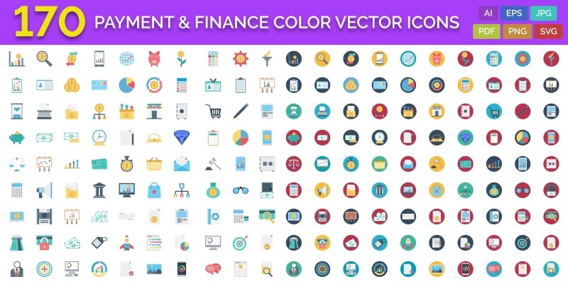 170 Payment and Finance Color Vector Icons. 170 Payment and Finance Color Vector Icons