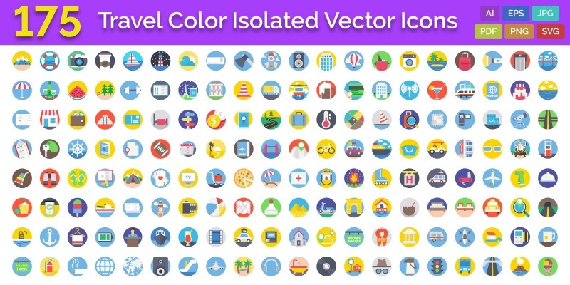 175 Travel Color Isolated Vector Icons