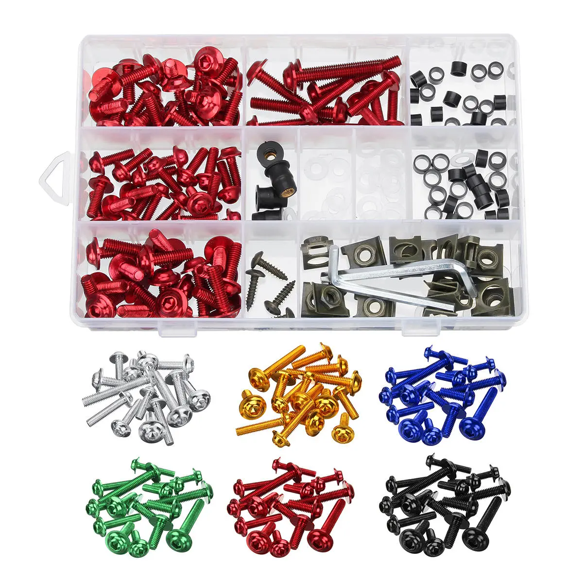 Kun US$38.10, køb den bedste 177 stk. motorcykelkarrosseriboltsæt møtrikker skruer clips til Honda/Yamaha/Kawasaki/Suzuki-onlinebutik til engrospris.