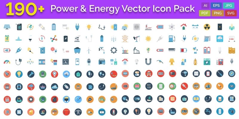 190 Power and Energy Color Vector Icon Pack. 190+ Power and Energy Color Vector Icon Pack