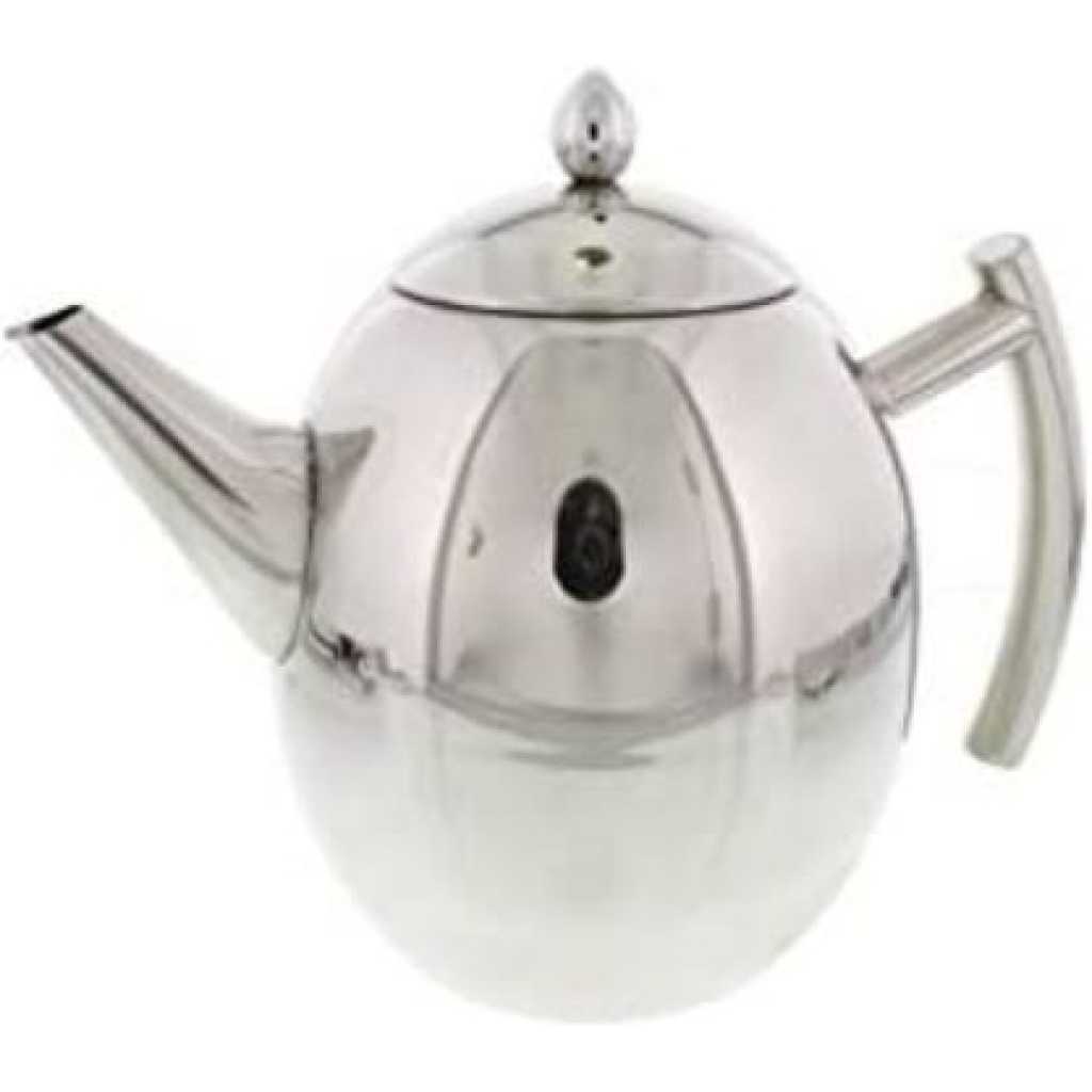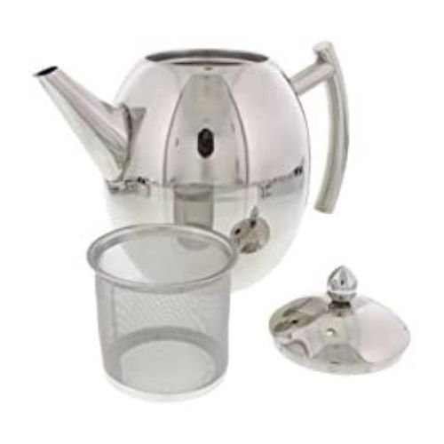 Cheftors Teapots are made of high-quality 1L stainless steel. They come with a stainless steel mesh handle integrally molded hollow to feel comfortable and maintain safe temperatures for handling. The fine, high-polished mirror surface gives these an elegant and modern look that goes with any kitchen, office or restaurant theme/ decor. The handle, spout and other seams are laser welded using a high-precision positioning process that creates a smooth appearance and durable seal. Great for making tea, coffee, hot coco, and any other hot beverage! High quality 1L stainless steel construction High-precision laser welded seams Hollow molded handle for temperature controlled handling Includes stainless mesh strainer Key Features: TOP QUALITY STAINLESS STEEL – Made of premium stainless steel. Durable rust resistant and dish washer safe. MODERN DESIGN – High quality mirror finish and elegant shape. Hollow handle stays cool so it can be handled safely PERFECT FOR TEA AND COFFEE – Suitable for tea bags, loose tea and ground coffee. Featuring stainless steel mesh tea/coffee infuser basket that keeps small pieces away from your brew. The basket is easily removable for leaves disposal and cleaning. GREAT GIFT – Beautiful look of this teapot makes it a perfect gift for tea and coffee drinkers Holds 1 liter / Will make 6 cups or 5 mugs of tea/coffee.