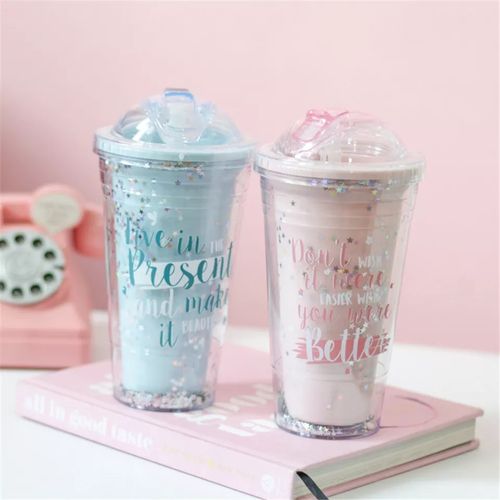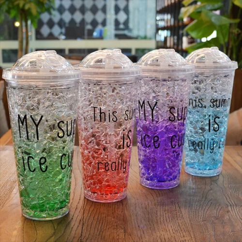 1pc 2-Layer Ice Cream Smoothie Juice Bottle Cup Kettle with Straw. This Mug is designed to add a splash of color and style to your home. It has a lead-free colored glaze. This mug is, refrigerator, oven, and dishwasher-safe, making it perfect to suit your fast-paced lifestyle.