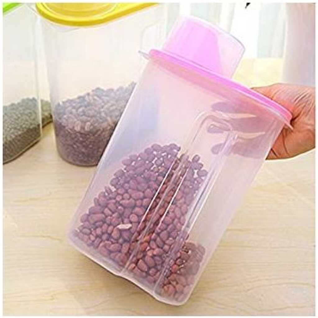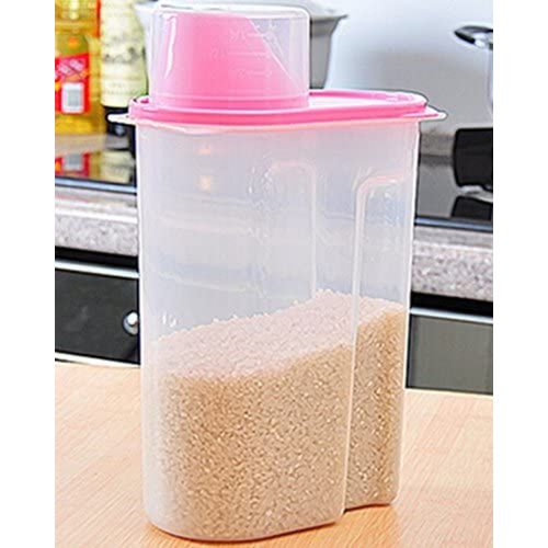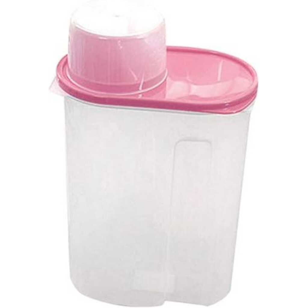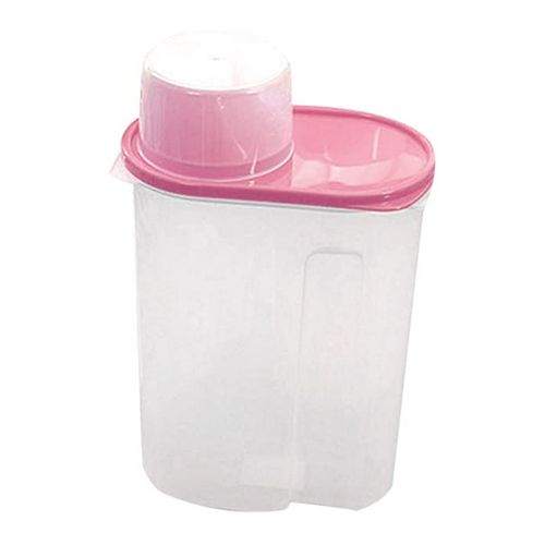 2.5 Litre Food Plastic Storage Grains Cereal Container, Pink. These practical storage containers are great for storing cereals, flour, rice, and much more. It will keep your kitchen pantry neat and organized while keeping your food fresh. Key Features: 2.5 Litre Food Plastic Storage Grains Cereal Container. Plastic bin that stores and pours kitchen food. Food storage container keeps food fresh for a longer time with an Air-tight seal. Holds kitchen staples like flour, sugar, rice, nuts, beans, snack, food, cereal, coffee, or tea. Dishwasher safe. Refrigerator, Freezer, & Microwave Safe. BPA Free.