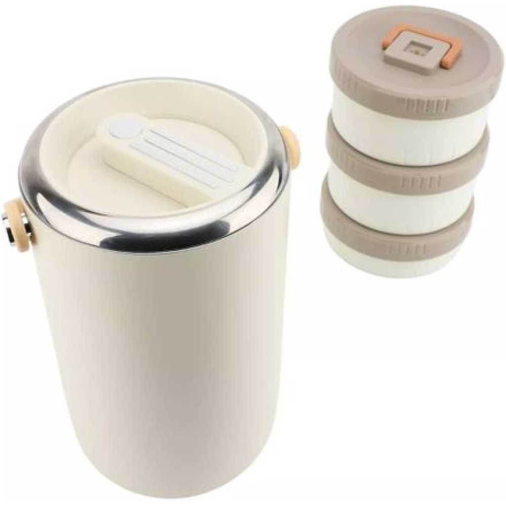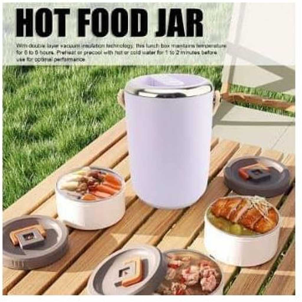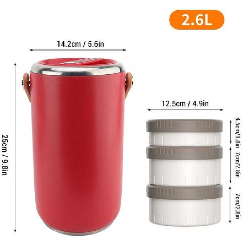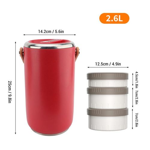 Key Features: 1. VACUUM LONG LASTING INSULATION: 2 layer vacuum insulation technology, long lasting insulation for 6-8 hours. To get better results, please pour hot or cold water into the food jar to preheat or precool for 1-2 minutes before putting in the food. 2. 3 COMPARTMENT FOOD CONTAINER: This lunch box has enough capacity for 3 stackable insulated lunch box. You can carry soup or a variety of dishes so you can enjoy a richer, more nutritious lunch or dinner, microwave safe for easy reheating. 3. LEAKPROOF DESIGN: Each lid has a sealed silicone to prevent food spills, and an exhaust vent valve on the lid that can be gently pressed to make the lunch box easy to open. Carry normally, there is no possibility of food spilling, shaking and inversion are not recommended. 4. EASY TO CLEAN: Wide mouth design, the interior 304 stainless steel, polished smooth, very easy to clean, in order to use the insulation lunch box for a long time, please dry and store the lunch box after each cleaning. 5. SAFE: The lunch box’s sealing lid and carrying handle are made of food grade PP material, and the lunch box is 304 stainless steel. Strong, not easy to deformation, to ensure the safety and health of your family, you can rest assured that use.