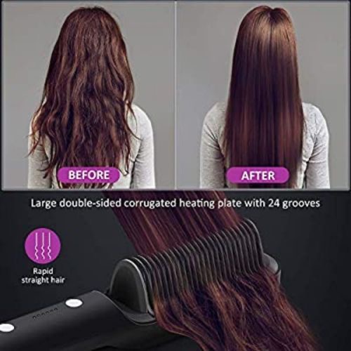 Ionic Hair Straightener Brush 2 in Heating – Black It has 6 different heat levels depending on the type of hair it is called to straighten Due to its wavy design, it straightens the hair without breaking the ends It has an elegant shape and thus differs from other similar brushes on the market. Hair brush straightener, euph 2 in 1 ionic hair straightener works on individual and decodes complexity of any hair type to brush with soft silicon broadband on the side Key Features: 6 different heat levels. Long cable with the ability to rotate 360 ​​degrees. Slab material: Ceramic Power: 34W-45W Outer casing: Plastic Minimum temperature: 130 degrees C Maximum temperature: 200 degrees C Voltage: 110v-240v