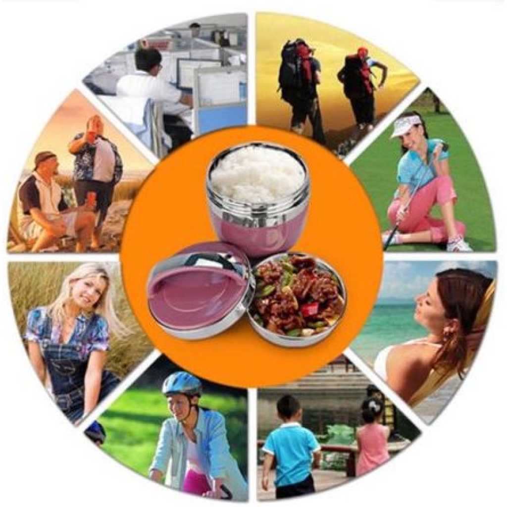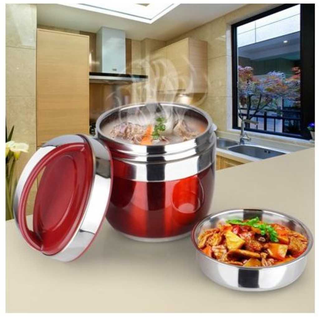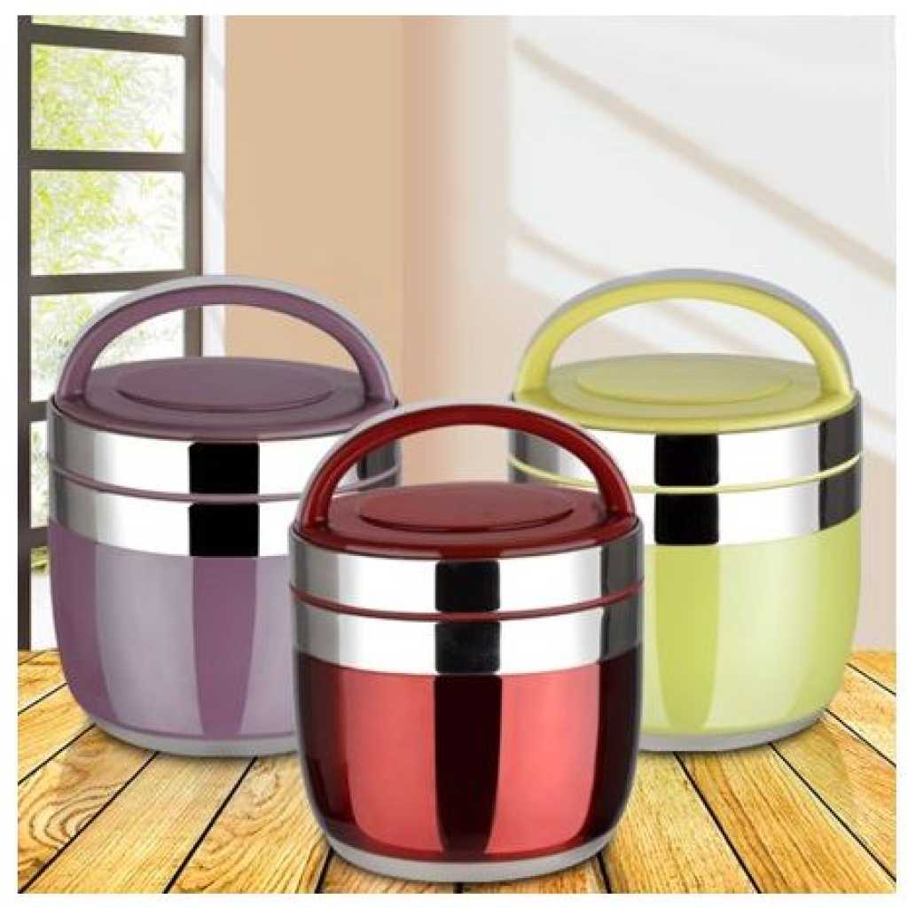 2 Layer Portable Steel Insulated Food Thermal Container Lunch Box 1.2L- Multi-colours. This food carrier/ warmer has a solid handle, double wall insulated for maximum heat retention, and a deep bowl shape design where you can keep quite an amount of food. With its smooth finish edge opening and a leak-prevention inner container is great for carrying hot soup or hot food. For the first time using and after using, please use a soft cloth or soft sponge with a small amount of dish soap and water to wipe the surface and rinse thoroughly with water. Available size: 1.2 Liter Key Features: 2 Layer Portable Steel Insulated Food Thermal Container Lunch Box 1.2L- Multi-colours. Colour: Multicolors Material: Stainless Steel Made of SUS304 stainless steel Double-wall vacuum Insulation for max temperature retention Silicone ring to prevent leaking The idea for carrying hot food as interior heat will not transfer to exterior Ideal food box for takeaway. More hygienic and environmentally friendly. Convenient to bring along to workplace, office, picnic, and school