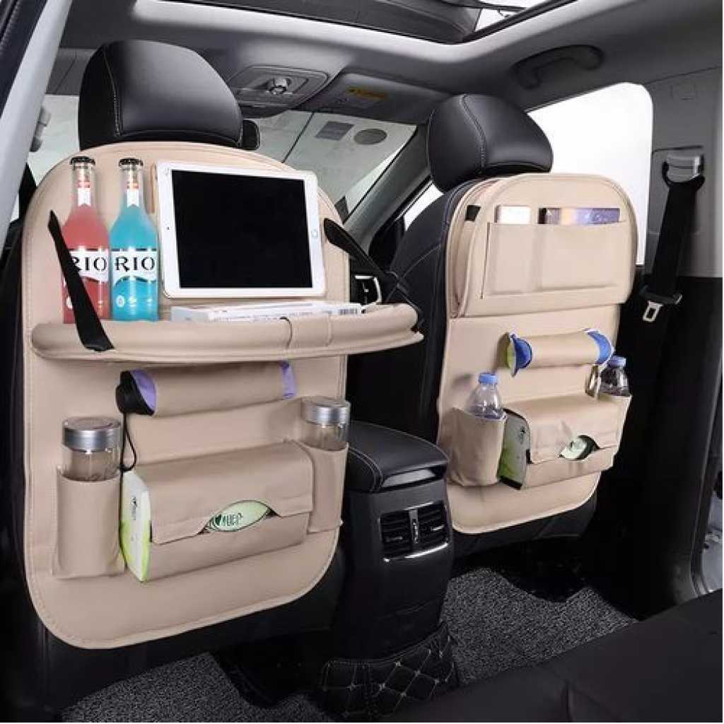 Key Features: LUXURY PU LEATHER MATERIAL :This backseat car organizer use high Grade premium quality PU leather, stays useful for years and makes your car elegant! Soft and comfortable! WATERPROOF & EASY TO INSTALL–The car seat organizer is made of waterproof material. You can easily wipe out the mud, candy, milk,and easy to clean! STURDY FOLDABLE TRAY & ADJUSTABLE –Car back seat organizer Made of hard board, bear up to 2kg items. The Backseat Organizer will stay in place when driving or bumping, it won’t slide off your car seat.STURDY FOLDABLE TRAY & ADJUSTABLE –Backseat car organizer Made of hard board, bear up to 2kg items. The car Organizer will stay in place when driving or bumping, it won’t slide off your car seat. CONVENIENT ORGANIZATION -This car seat back organizer keeps your car organizered, and will protect your seat from getting scratched.CONVENIENT ORGANIZATION -This backseat car organizer keeps your car organizered, and will protect your seat from getting scratched. MULTI-POCKET — Back seat organizer for baby/kids has 9 Separate different size compartments, providing quick access to iPad ,phones, bottles, umbrella, papers, magazines and more.MULTI-POCKET — Backseat organizer for baby/kids has 9 Separate different size compartments, providing quick access to iPad ,phones, bottles, umbrella, papers, magazines and more.