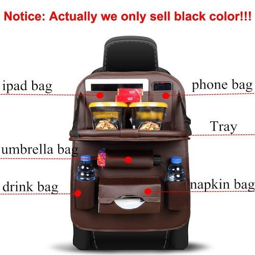 Key Features: LUXURY PU LEATHER MATERIAL :This backseat car organizer use high Grade premium quality PU leather, stays useful for years and makes your car elegant! Soft and comfortable! WATERPROOF & EASY TO INSTALL–The car seat organizer is made of waterproof material. You can easily wipe out the mud, candy, milk,and easy to clean! STURDY FOLDABLE TRAY & ADJUSTABLE –Car back seat organizer Made of hard board, bear up to 2kg items. The Backseat Organizer will stay in place when driving or bumping, it won’t slide off your car seat.STURDY FOLDABLE TRAY & ADJUSTABLE –Backseat car organizer Made of hard board, bear up to 2kg items. The car Organizer will stay in place when driving or bumping, it won’t slide off your car seat. CONVENIENT ORGANIZATION -This car seat back organizer keeps your car organizered, and will protect your seat from getting scratched.CONVENIENT ORGANIZATION -This backseat car organizer keeps your car organizered, and will protect your seat from getting scratched. MULTI-POCKET — Back seat organizer for baby/kids has 9 Separate different size compartments, providing quick access to iPad ,phones, bottles, umbrella, papers, magazines and more.MULTI-POCKET — Backseat organizer for baby/kids has 9 Separate different size compartments, providing quick access to iPad ,phones, bottles, umbrella, papers, magazines and more.