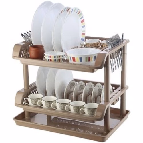 Organize your kitchen utensils with this 2-tier dish bowl drainer rack. It provides a convenient space for keeping cups, saucers, dishes, plates, bowls, cutlery, flatware and other items. This kitchen rack is easyOrganize your kitchen utensils with this 2-tier dish bowl drainer rack. It provides a convenient space for keeping cups, saucers, dishes, plates, bowls, cutlery, flatware and other items. This kitchen rack is easy to set up within minutes and comes with fully detachable parts that are easy to store when not in use. It drains water and keeps kitchen utensils dry and clean. This sink drying rack is convenient to set up on kitchen platforms and counter tops. It is made of durable plastic, which is easy to clean. Has creative and convenient design that the drainage board for 360 degree rotation installed in the bottom, easy to drainage and placement. Various storage grids accommodates all sorts of tableware, includes flexible chopsticks basket. All grids have the function of drainage and keeps tableware clean, dry, health. Heightened supporting foot which is good for ventilating, keeping clean and skid resistance. to set up within minutes and comes with fully detachable parts that are easy to store when not in use. It drains water and keeps kitchen utensils dry and clean. This sink drying rack is convenient to set up on kitchen platforms and counter tops. It is made of durable plastic, which is easy to clean. Has creative and convenient design that the drainage board for 360 degree rotation installed in the bottom, easy to drainage and placement. Various storage grids accommodates all sorts of tableware, includes flexible chopsticks basket. All grids have the function of drainage and keeps tableware clean, dry, health. Heightened supporting foot which is good for ventilating, keeping clean and skid resistance.