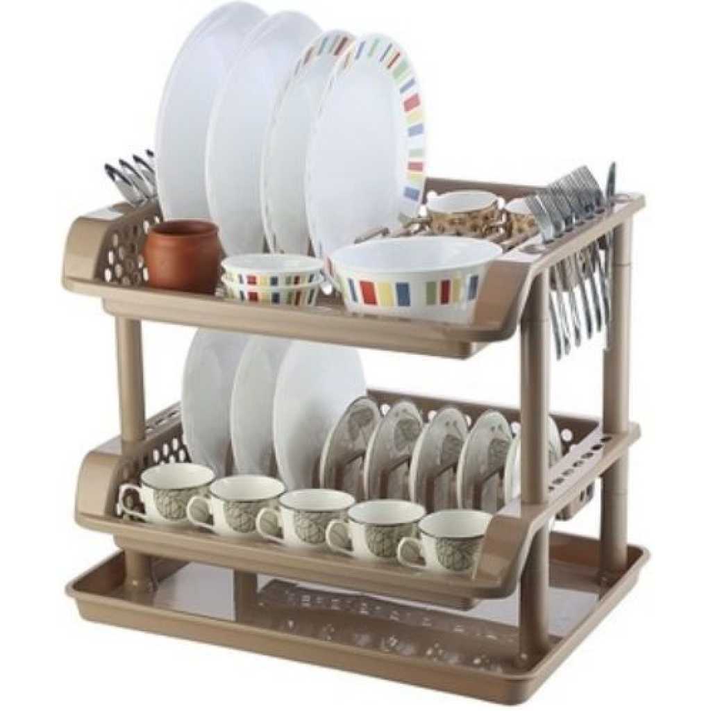 Organize your kitchen utensils with this 2-tier dish bowl drainer rack. It provides a convenient space for keeping cups, saucers, dishes, plates, bowls, cutlery, flatware and other items. This kitchen rack is easyOrganize your kitchen utensils with this 2-tier dish bowl drainer rack. It provides a convenient space for keeping cups, saucers, dishes, plates, bowls, cutlery, flatware and other items. This kitchen rack is easy to set up within minutes and comes with fully detachable parts that are easy to store when not in use. It drains water and keeps kitchen utensils dry and clean. This sink drying rack is convenient to set up on kitchen platforms and counter tops. It is made of durable plastic, which is easy to clean. Has creative and convenient design that the drainage board for 360 degree rotation installed in the bottom, easy to drainage and placement. Various storage grids accommodates all sorts of tableware, includes flexible chopsticks basket. All grids have the function of drainage and keeps tableware clean, dry, health. Heightened supporting foot which is good for ventilating, keeping clean and skid resistance. to set up within minutes and comes with fully detachable parts that are easy to store when not in use. It drains water and keeps kitchen utensils dry and clean. This sink drying rack is convenient to set up on kitchen platforms and counter tops. It is made of durable plastic, which is easy to clean. Has creative and convenient design that the drainage board for 360 degree rotation installed in the bottom, easy to drainage and placement. Various storage grids accommodates all sorts of tableware, includes flexible chopsticks basket. All grids have the function of drainage and keeps tableware clean, dry, health. Heightened supporting foot which is good for ventilating, keeping clean and skid resistance.