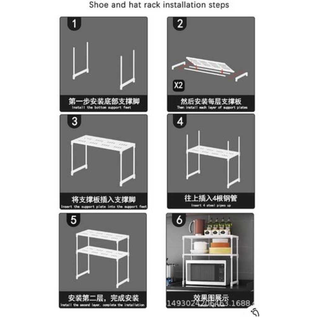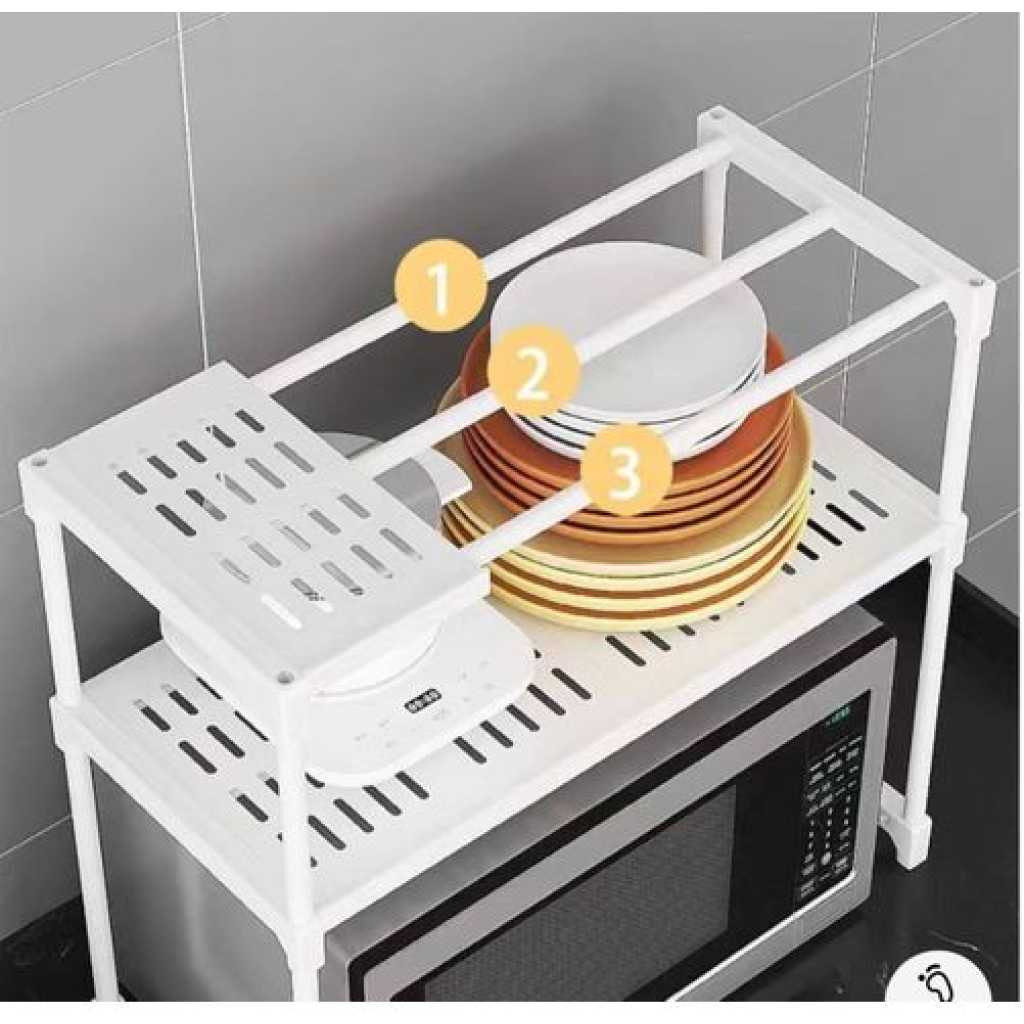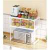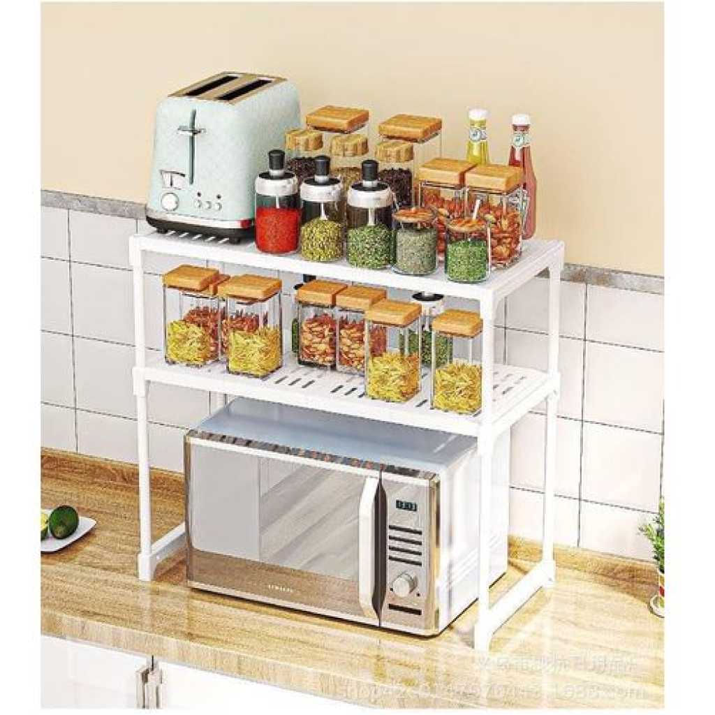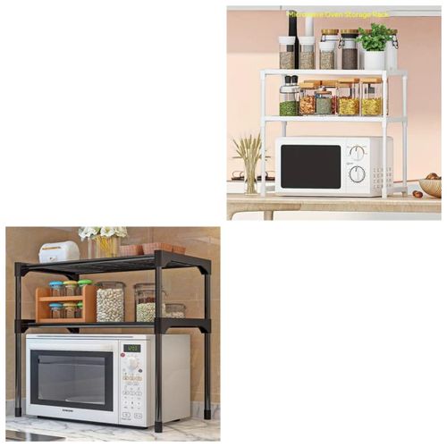 Key Features: 2 Tier Microwave Storage Rack Microwave Shelf Rack Microwave Oven Wall Stand- Multicolor ★ Adjustable 2-tier microwave oven rack, the height of the first layer can be adjusted 33-38cm, the height of the second layer can be adjusted 29-34cm, and the width can be stretched 40-63cm ★ Multifunctional Utility kitchen racks, microwave oven racks, metal racks, multifunctional and practical kitchen countertop storage racks ★ Kitchen countertop Organizer, which can store microwave, oven, mixer, bread maker, kitchen supplies, tableware, etc. ★ It saves space and can be placed in the corner of the kitchen. The kitchen supplies are placed neatly and orderly, which increases the hobby of cooking