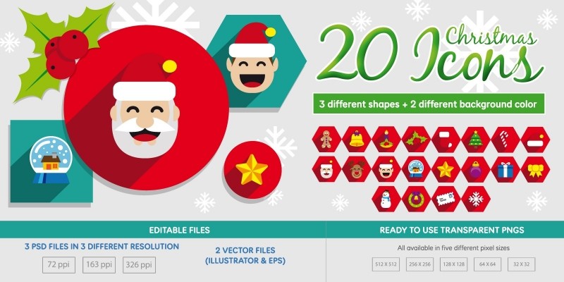 20 Christmas Icons. 3 different shapes and 2 different color background