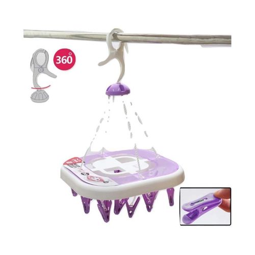 Key Features: Clothes Drying Rack Material: Made of high quality material, the folding hanger is sturdy and durable. Laundry Drip Hanger 20 CLIPS: With 20 clips so that you can hang a lot of clothes at the same time. Sock Drying Hanger ANTI-SKID CLIP: Anti-skid clip makes sure that the clothes can be clamped firmly. Baby Clothes Hangers 360 DEGREES HANGER: The hanger can be rotated 360 degrees, you can easy to take your clothes. Indoor Outdoor Baby Wet and Dry Dryer Function: Press type windproof hook can be hanged on a shower curtain rod, clothesline or garment rack.