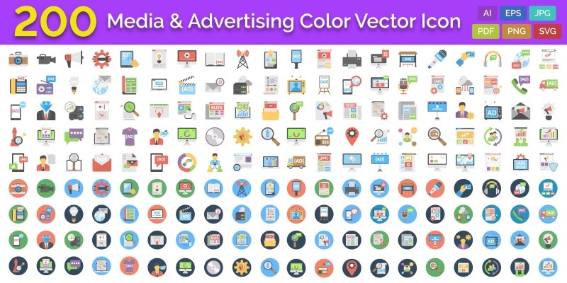 200 Media And Advertising Color Vector Icon. 200 Media And Advertising Color Vector Icon