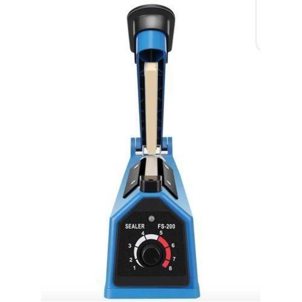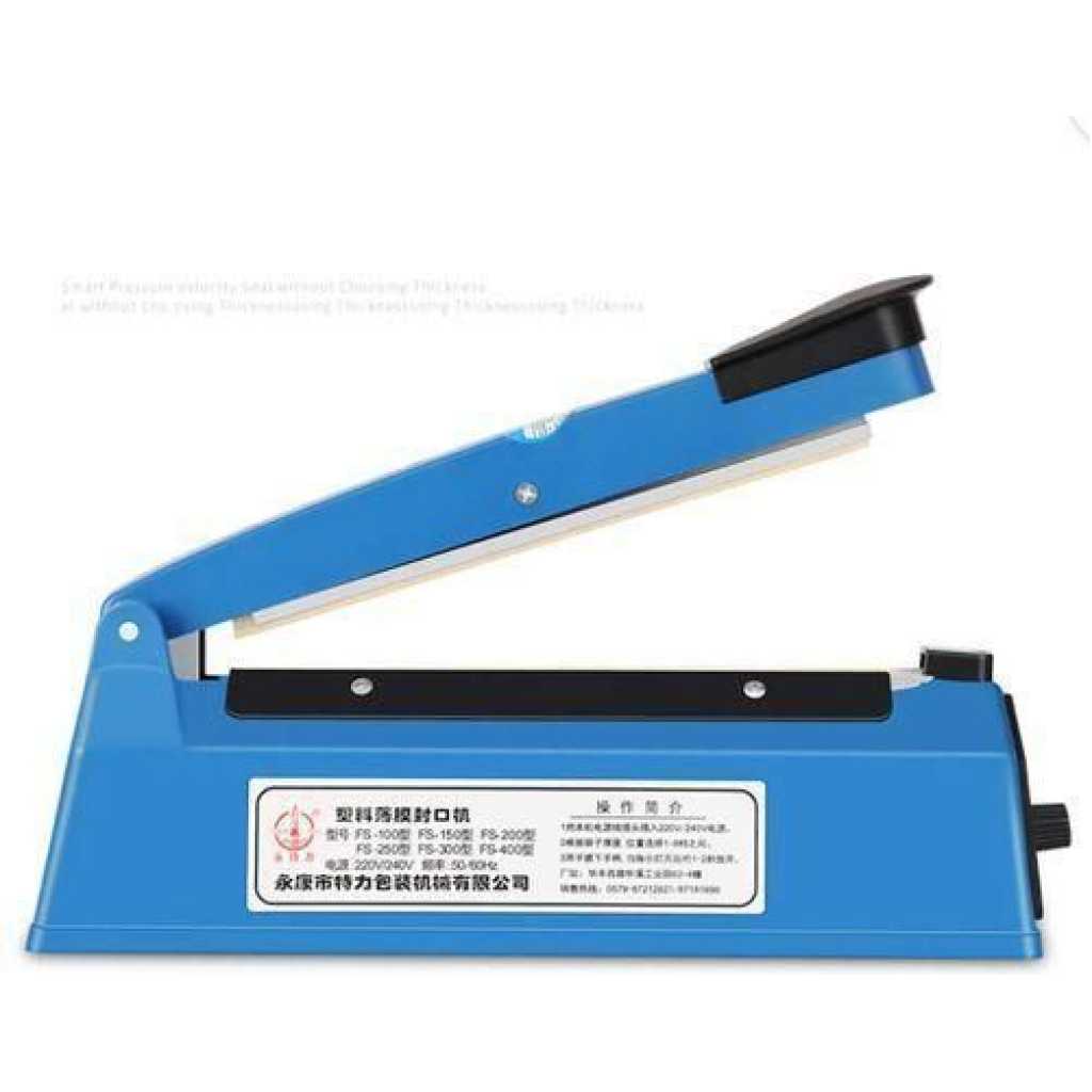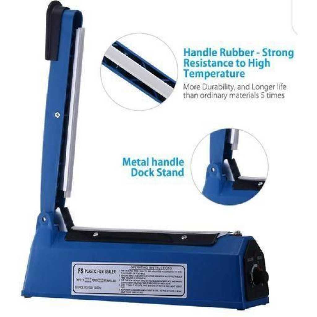 File position: 8 gear adjustable Power supply: 220V 50/60Hz Color: Blue Sealing speed: 5-10 seconds Temperature control range: 200-350 degrees Key Features: This sealer is suitable to seal every kind of plastic films and widely used in the fields such as food and sweet stuff, drags, native and special goods, electric appliance parts etc. It is a perfect tool for home use to maintain product quality and avoid product loss.