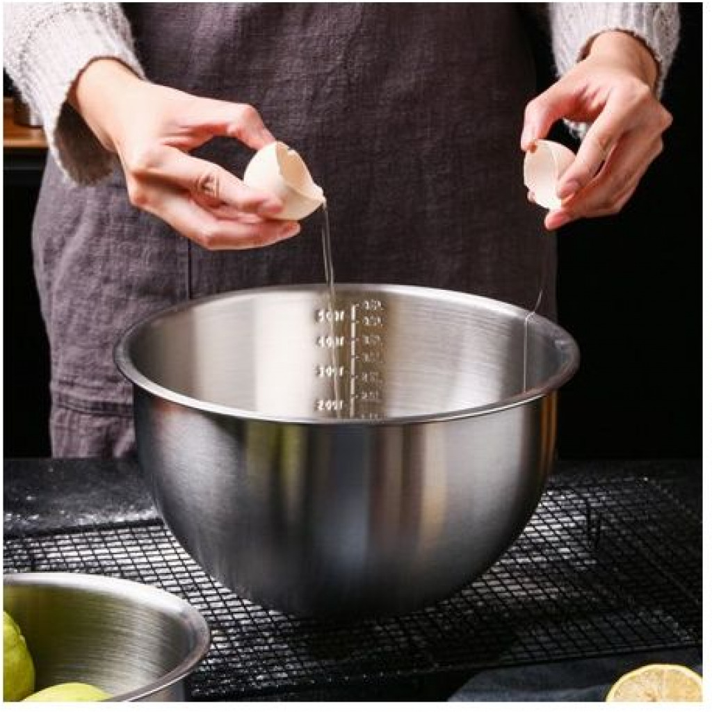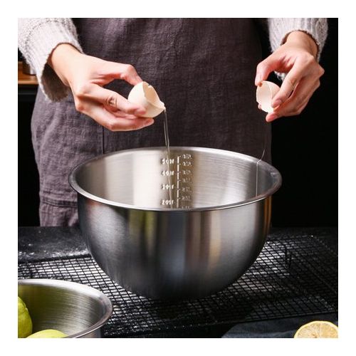 This versatile classic bowl is a kitchen must have. Specially designed with a mix of durable materials, this bowl is perfect for mixing cakes, marinating meat or making a tasty salad. Great for both cooking and serving food, this bowl is ideal for family meals and dinner parties. Stainless steel bowl for mixing eggs, suitable for cooking, baking, etc. 304 stainless steel, sturdy and durable. Easy to with no dead angle. Deep mixing bowl with scale, large capacity for convenient use. Can be stacked together, space-saving, keep your kitchen neat. Multifunctional bowl for salad, fruits, vegetables, dishwashing, etc
