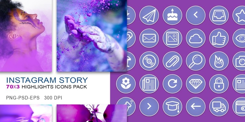 210 Instagram Story Highlights Purple Icons Pack. 210 Instagram Story Highlights Icons Pack in Purple Color