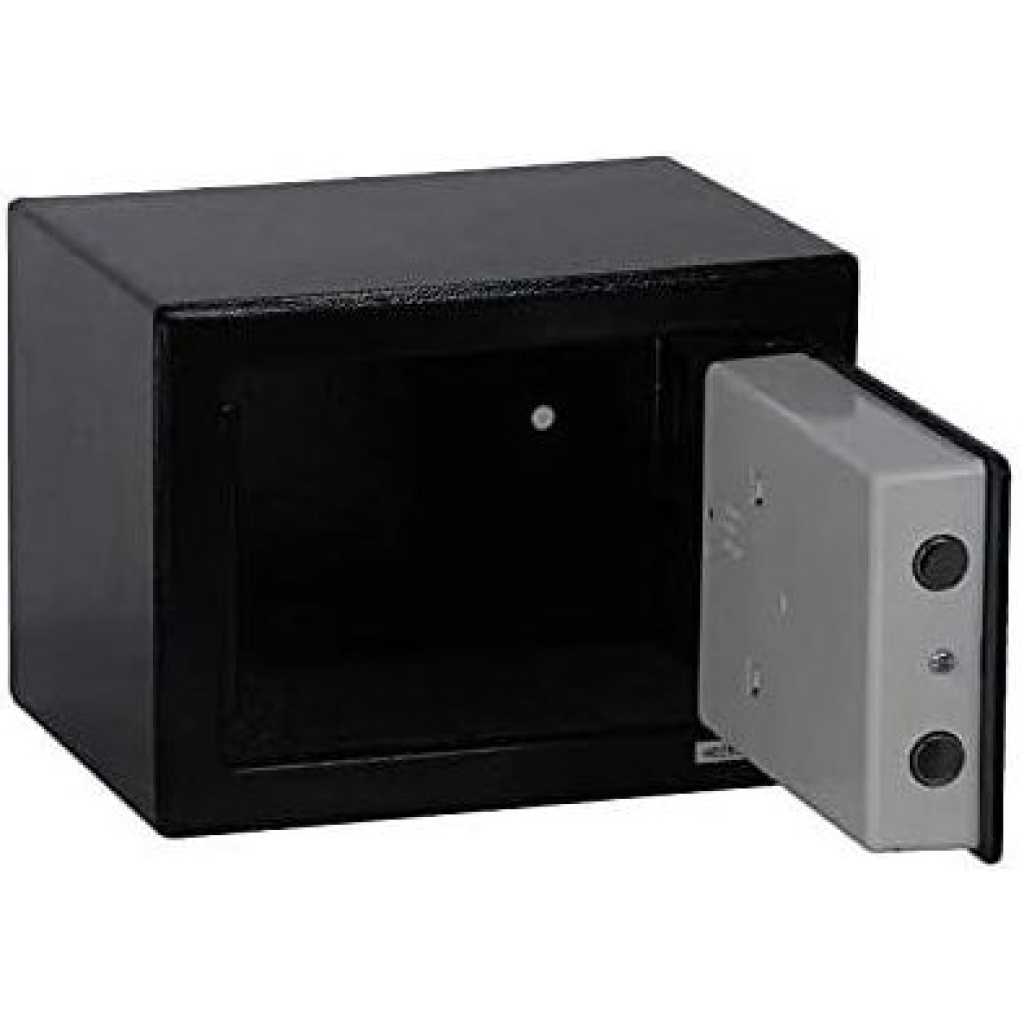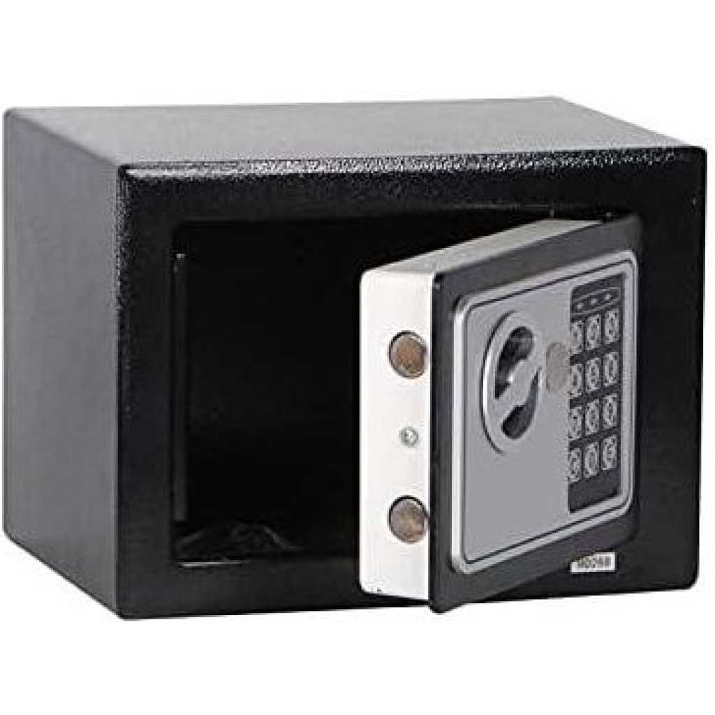 Key Features: 23 cm* 17 cm Digital Electronic Safe Box T-17 Number & Key Lock/Unlock Security Safes Mini Electronic Password Deposit Box with Keypad for – Multicolor HOME SAFE : Protect your valuables with this personal safe, complete with carpeted floor; use as a cash safe, jewelry safe and more DIGITAL SAFE : Opens with digital pin code or override keys. PIN numbers can be programmed 3 to 8 digits long. SECURITY : Double Deadbolt Electronic Lock w/Digital Keypad, it has 2 pre-drilled holes for mounting to the floor, wall or cabinet to help prevent unauthorized entry or removal of your personal safe. Please DO NOT STORE THE OVERRIDE KEYS INSIDE THE SAFE! Check your package for all the contents and if anything is missing, please get the product replaced with 7-10 days of purchase. This is a home safe, therefore for security purposes it does not come with a master passcode. MULTIPURPOSE : Securely store your cash, jewelry, documents, passports, heirlooms, etc. You can lock up your valuable assets and items with confidence and enjoy peace of mind! AUTO LOCK : After 3 input errors, the alarm will sound for 20 seconds, and after 3 input errors, it will sound for 5 minutes to remind you to attempt theft.