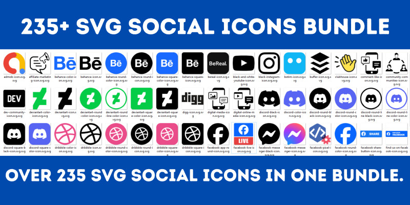 235 SVG Social Icons Bundle. Introducing the 235+ SVG Social Icons Bundle—your go-to collection for sleek, modern, and highly versatile social media icons.