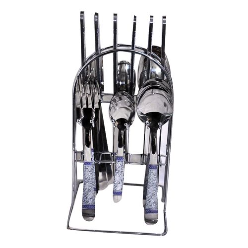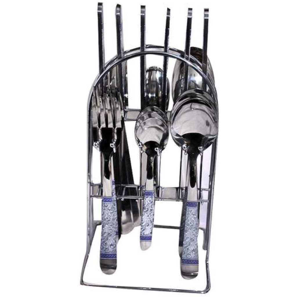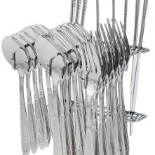 24 Piece Flowered Dinner Cutlery (Forks, Spoons & Knives) With A Stand – Silver. A set of stainless steel cutlery suitable for a fine dining experience. The full set includes 6 forks, 6 teaspoons, 6 tablespoons, and a stand. Key Features: 24 Piece Flowered Dinner Cutlery (Forks, Spoons & Knives) With A Stand – Silver. 6 forks 6 teaspoons 6 tablespoons 6 table knives Stand