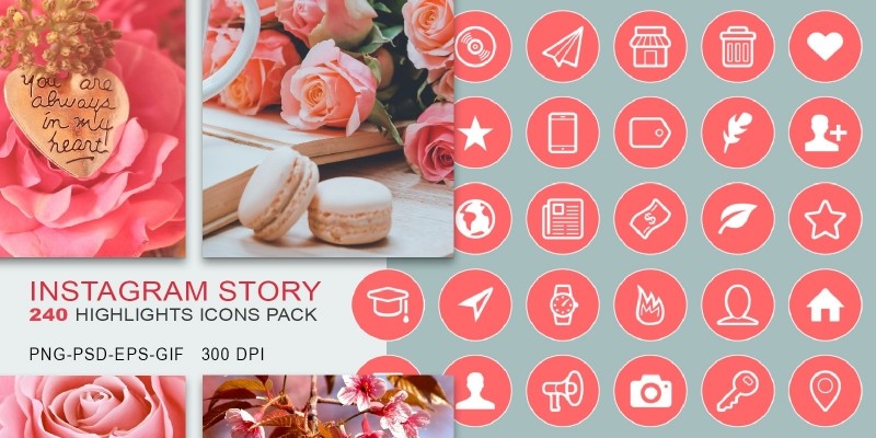 240 Living Coral Instagram Story Highlights Icons . 240 Living Coral Instagram Story Highlights Icons Set in Living Coral Color .