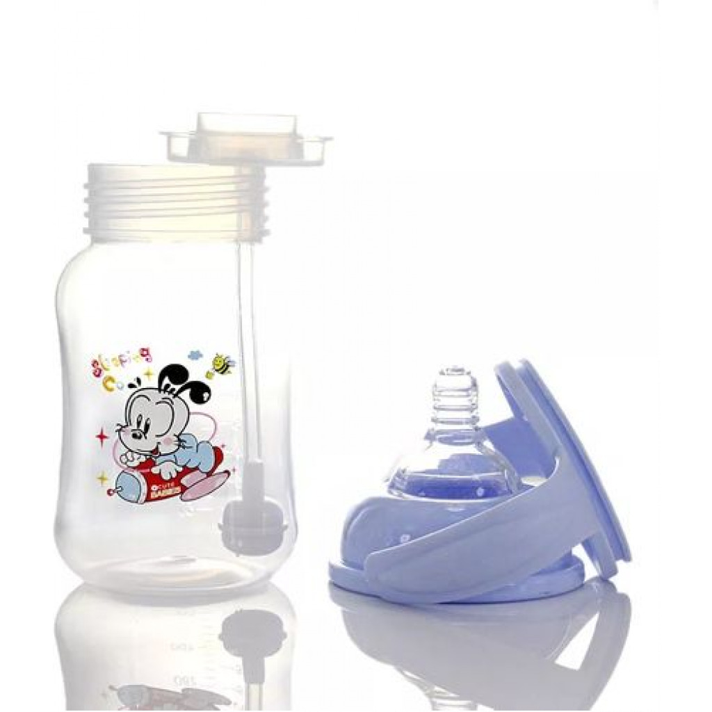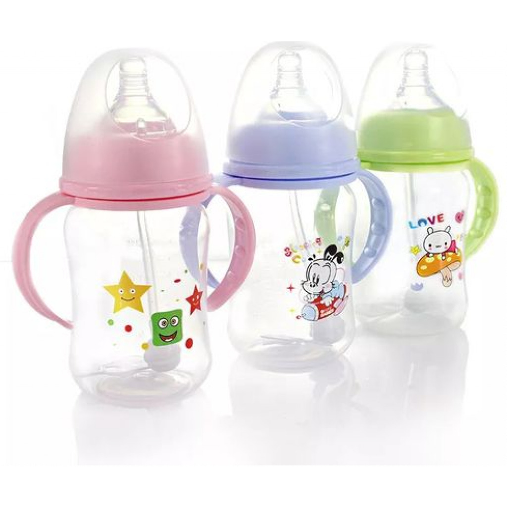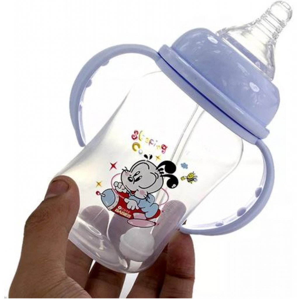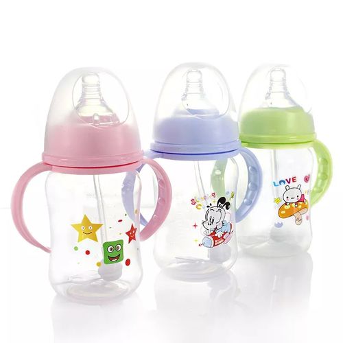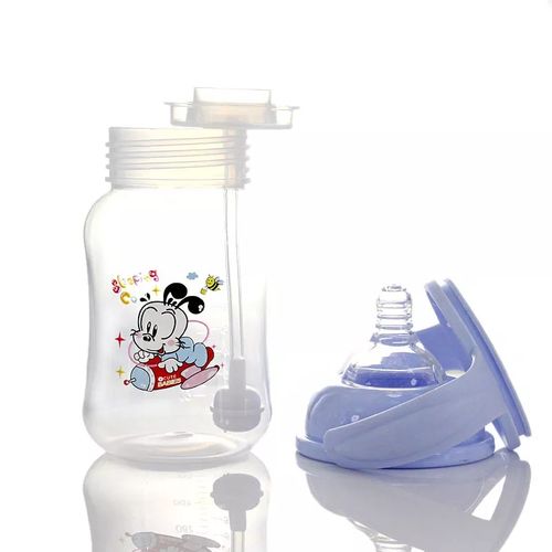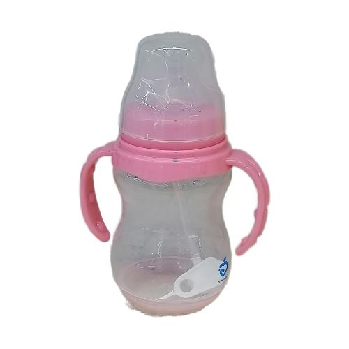 The bottle body is made of polypropylene (PP), a highly transparent and environmentally-friendly material. It is safe and non-toxic, and does not contain the chemical substance bisphenol A (BPA) that interferes with hormone secretion. High toughness, strong impact resistance, not easy to break, and can resist a variety of organic solvents and acid-base corrosion. Automatic straw design, break the traditional milk bottle to get high suction method, any position can suck freely. With the handle, it is more convenient to use. Nipples are made of food-grade silica gel with a special process, moderate softness and hardness, and a comfortable touch. Air valve design, the pressure inside and outside the bottle can automatically maintain balance, pacifier is not easy to absorb flat, so that baby sucking smooth, while avoiding inhalation of excessive air caused by vomiting or breast milk. The cross-hole design has the effect of automatically adjusting the milk volume without sucking or leaking and with the sucking force of the baby. All parts can withstand high temperatures up to 120 degrees and can be boiled in the water for disinfection. Wash the parts before use and put them into water and sterilize them for 5 minutes. When boiled and sterilized, the amount of water should be sufficient to prevent the product from deforming due to prolonged exposure to the bottom of the pan or the edge of the pot. After preparing the milk, insert the nipple into the thread and gently pull it out. Key Features: product Type: Feeder Material: Plastic Good Quality Product BPA free feeder Capacity: 240 ml Materials: Plastic With Handle Easy to Wash Age: 3 months- 1.5 years Have cover with a plastic