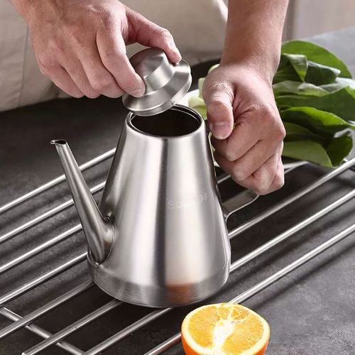 Key Features: 24Oz Oil Dispenser Storage Container Can, Vinegar Jar Pot Pourer Bottle- Silver. Made of stainless steel Color: Silver. Material: Stainless Steel. Made of food-grade stainless steel, the oil dispenser is sturdy and durable, totally safe to contain edible oil and other liquid condiments. Extra long spout design for smoother pouring. The special design allows the dispenser to control the oil and amount easily while preventing oil from leaking everywhere. The handle is sturdy and the weld is good. The cap fits precisely. Drip-free oil bottle, perfect for use daily. Perfect for oil, olive oil, vinegar, soy sauce, cooking liquor, and other liquid condiments.