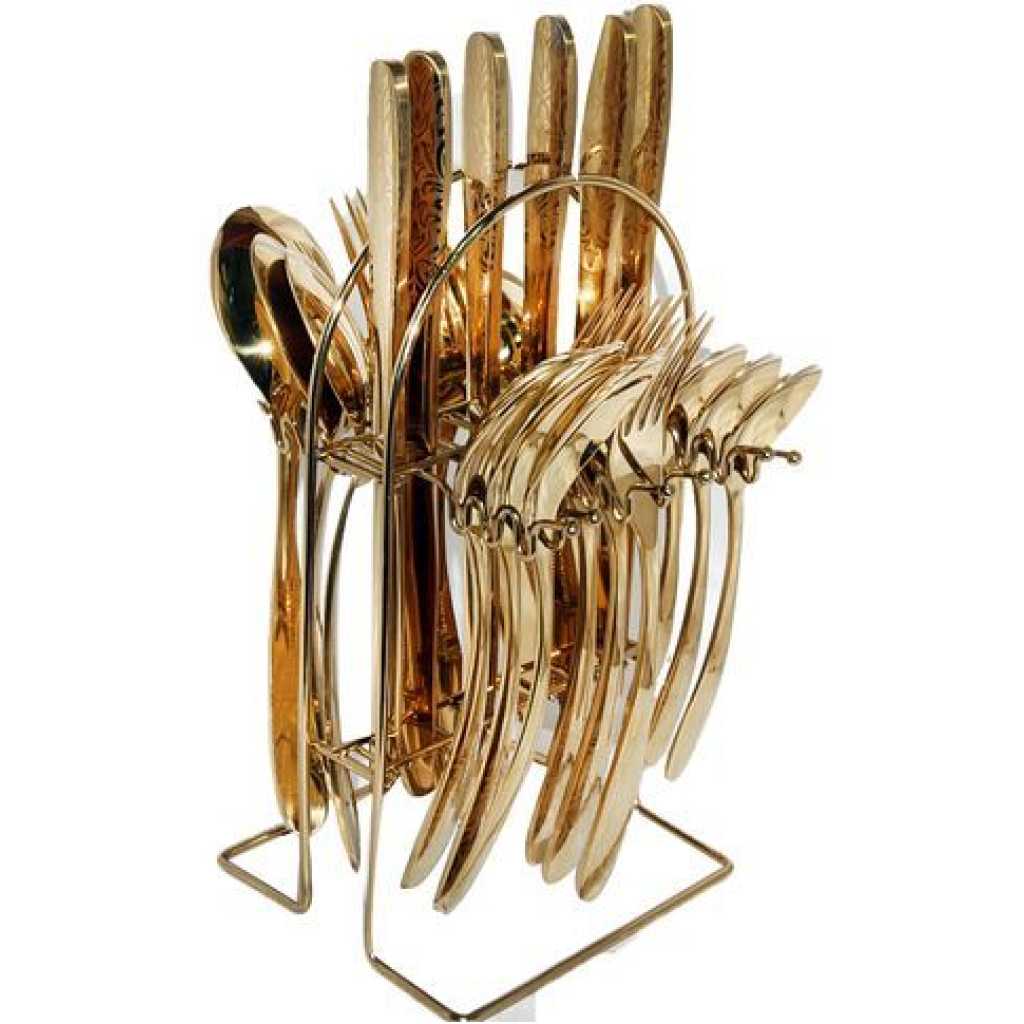 24pcs Cutlery Set A set of stainless steel cutlery suitable for a fine dining experience. Full set includes 6 forks, 6 tea spoons, 6 table spoons, 6 table stands and a stand. Select from a wide range of Unique products on TilyExpress and enjoy convenient and secure online shopping, delivery, guaranteed products and competitive pricing. Grab this deal and more at unbeatable prices with doorstep delivery. Key Features: 6 forks 6 teaspoons 6 tablespoons 6 table knives Stand