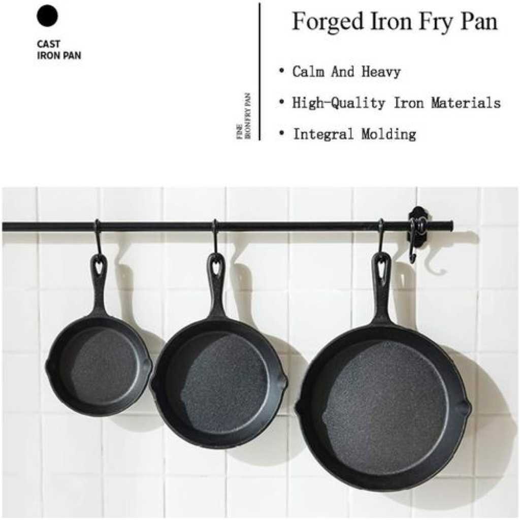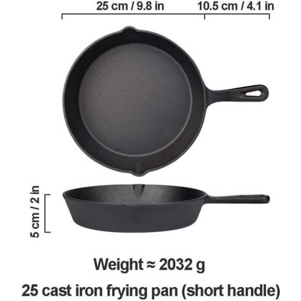 Product description Material: cast iron Type of lid: no lid Packing volume: 35*20*8 USE 1) It is safe to use metal, wood or silicone utensils with your cookware. 2) Some foods (especially eggs) may stick to some degree during initial usage. It is advisable to employ extra oil or butter until the seasoning has built-up. 3) Acidic foods such as tomatoes, beans and certain sauces can damage the seasoning and should be avoided until the natural non-stick layer has matured. 4) Cast iron rarely needs to be placed on an above-medium heat setting if adequately pre-heated. On occasions when a higher cooking temperature is required, elevate the heat gradually and apply oil just prior to adding the food in order to prevent sticking. 5) Holders/mitts are essential when using the handles. Protect countertops with trivets. Cast iron provides the finest heat distribution and retention of any cookware metal. The heat spreads rapidly and evenly across both the bottom and sides of the material and stays hot for a prolonged period of time. It is also extremely versatile and can be used to sear, fry, sauté, grill, roast, bake, braise and boil – both indoors or out. Cast iron will tolerate any heat source (except microwaves) and is therefore suitable for induction, ceramic, electric and gas cooktops. It will perform effortlessly in the oven, on the stove, in the grill and even on barbecues/campfires.
