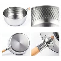 The traditional hand-hammered carbon steel wok is the one true wok. It stands above cast iron, non-stick, stainless steel, ceramic coated, anodized aluminium to carry the heat required for genuine wok hei flavour. It will improve with age & use, developing a beautiful, black, non-stick patina and add authentic flavour to your cooking. Unlike a non-stick wok, you can heat it until scorching hot to sear meat and avoid sticking. Key Features: Anodized cookware is non-toxic and environment friendly. Standardised aluminium utensil Premium quality mirror finish stainless steel deep vessel pan Compatible for both induction and gas stove use. Easy to use Made Of All-Metal Stainless Steel For Durability And Wooden Handle Designed With Two-Sided Pour Spouts For Pouring From Either Side Suitable For Use In Gas Furnaces, Induction Cookers, Induction Furnaces Even Heat Distribution: Specially Constructed Base With Stainless Steel Encapsulation That Avoids Heat Spots And Distributes Heat Evenly, Saving Energy Designed For Air Flow To Keep Handle Cool Even When The Pan Is Hot. Double Riveted For Strong And Life Long Use